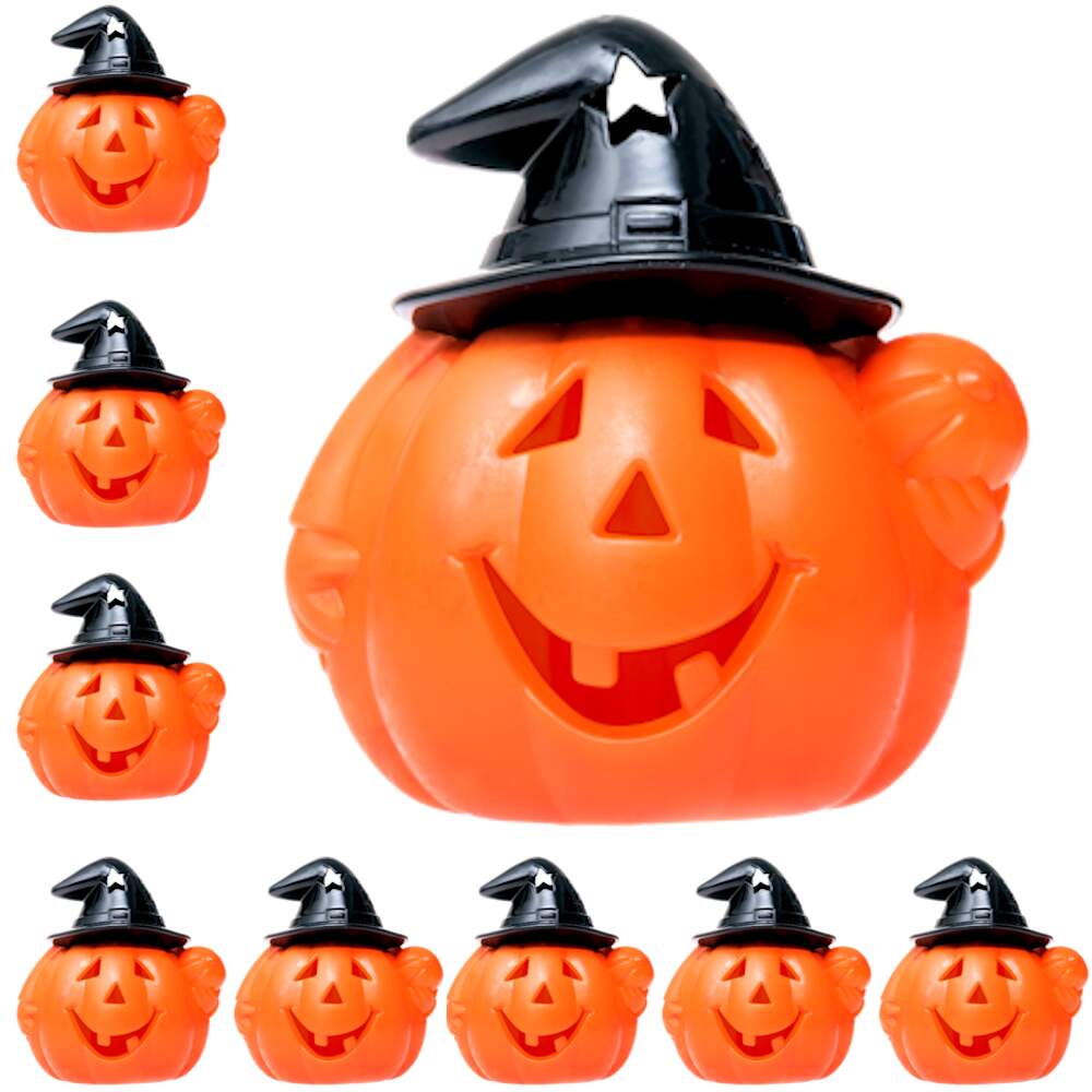 10 Abóboras Bruxinha Decoração de Festa Halloween dia das Bruxas 0 avaliações | Dê a sua avaliação! Referência: XIS1098kit10 Modelo/Marca: Abóbora com Chapéu de Bruxa de Decoração Halloween para Festa Dia das Bruxas/Toy Master R$ 85,23 ou 3x de R$ 29,72 sem juros ou em até 12x de R$ 9,07 no cartão Comprar Indicar este produto Deixar um comentário Boleto Bancário Parcelas 1x de R$ 89,17sem juros 2x de R$ 44,58sem juros 3x de R$ 29,72sem juros 4x de R$ 24,82 5x de R$ 20,39 6x de R$ 16,99 7x de R$ 14,87 8x de R$ 13,01 9x de R$ 11,86 10x de R$ 10,76 11x de R$ 9,78 12x de R$ 9,07 Mini Abóbora com Chapéu de Bruxa de Decoração Halloween para Festa Dia das BruxasDecore sua festa do dia das bruxas ou ambiente de tema Halloween com a Mini Abóbora Bruxinha da Toy Master. Além de linda, é leve, resistente e bem construída com plástico de ótima qualidade. Possui 12 cm de altura e 9 cm de diâmetro. Pode ser usado para brincar ou como parte da decoração de festas Halloween.Características:Marca: Toy MasterTamanho: 12 cm de altura x 9 cm de diâmetroPeso: 38 gMaterial: 100% PolipropilenoCertificado INMETRO: OCAN-BRI0137/19-8 NM 200/2002Conteúdo do Pacote:10x Mini Abóbora Bruxinha Decorativo Laranja
