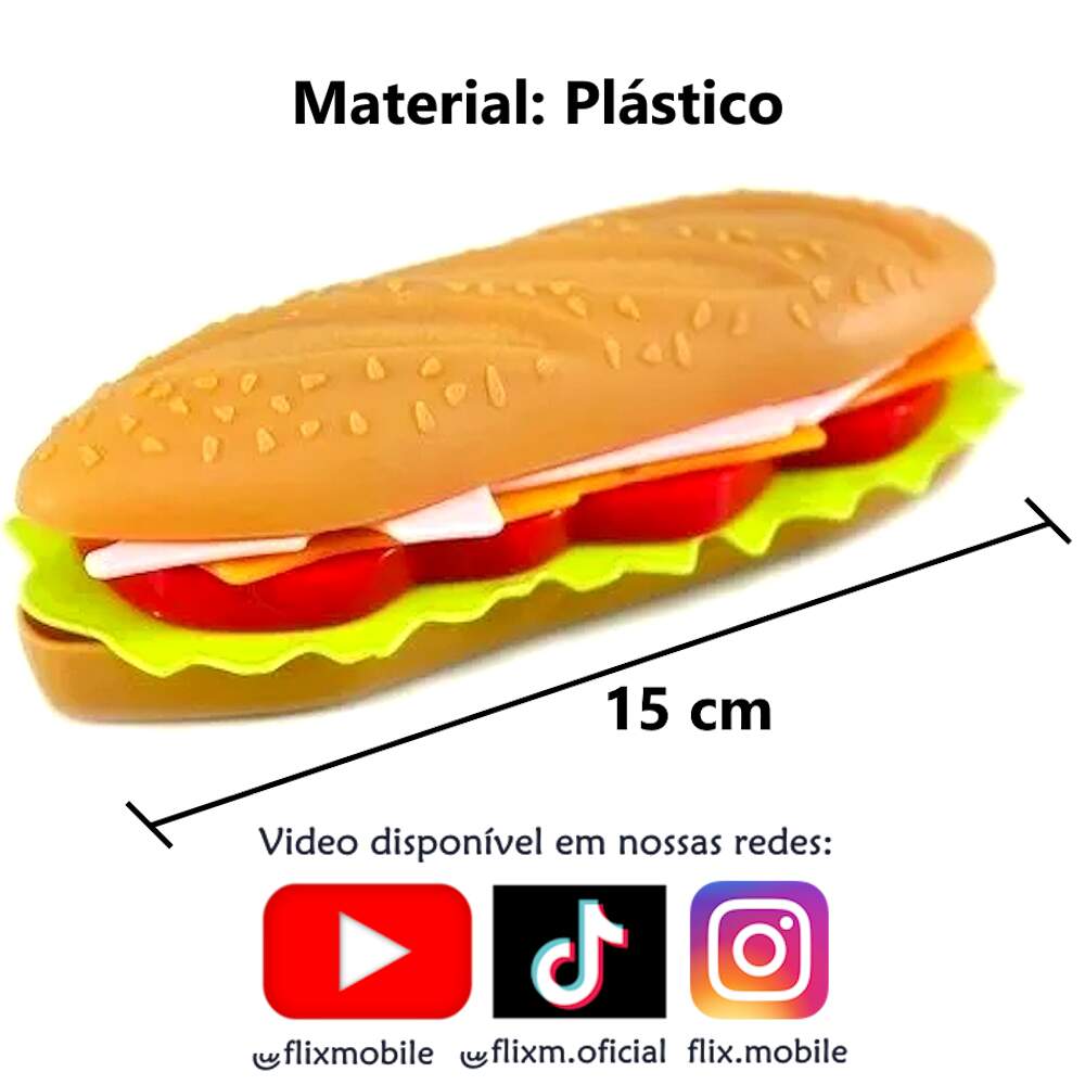 2 Lanches Educativo para Montar e Desmontar encaixando Ingrediente Baguete de Brinquedo 0 avaliações | Dê a sua avaliação! Referência: FU3716kit2 Modelo/Marca: Hamburguer de Brinquedo Faz de Conta Lanche de Baguete de Montar/Futuro R$ 25,20 ou 3x de R$ 8,79 sem juros ou em até 5x de R$ 6,03 no cartão Comprar Indicar este produto Deixar um comentário Boleto Bancário Parcelas 1x de R$ 26,36sem juros 2x de R$ 13,18sem juros 3x de R$ 8,79sem juros 4x de R$ 7,34 5x de R$ 6,03 Hambúrguer de Brinquedo Faz de Conta Lanche de Baguete de Montar - 2 UnidadesO Lanche de brinquedo traz muito realismo para as brincadeiras de casinha e comidinha, o lanche tem detalhes realistas e todos os ingredientes são encaixados podendo ser desmontados trazendo mais legitimidade para a brincadeira!Vídeo de demonstração no anúncio ou em nossas redes e canais Flix Mobile / Flix M / @flixm.oficialCaracterísticas:Marca: Futuro KidsTipo: Kit Lanche Hambúrguer com batata fritaDimensões Aproximadas: 15cm x 7cm Composição: Polímeros PlásticosIdade Recomendada: A partir de 3 anosDimensões do Brinquedo: Disponível nas fotosPeso: 100gCertificado INMETRO: CE-BRI/BRICS 00003-13 NM300/2002Conteúdo do pacote:2x Lanche de brinquedo