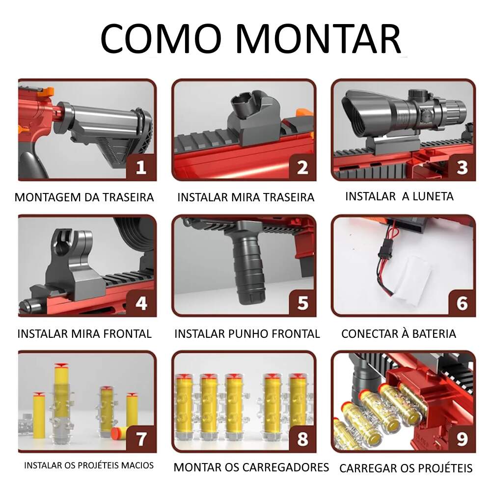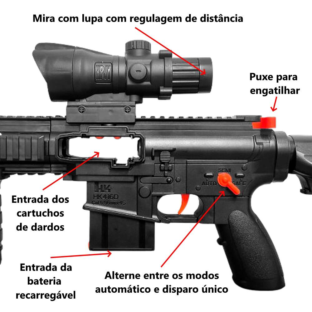 Lançador de Dardos de Espuma com Ventosa com Modo Manual e Automático Mira e Luneta Telescópica Sortidas