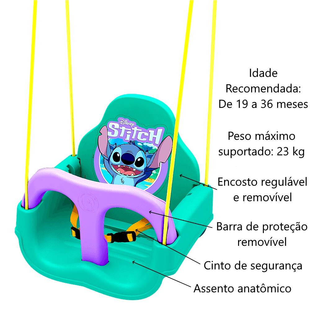 Balanço Stitch para Bebês e Crianças 3 em 1 Infantil Xalingo 0 avaliações | Dê a sua avaliação! Referência: 12243 Modelo/Marca: Cadeirinha de Balanço Infantil do Stitch Com Trava de Proteção Encosto e Cinto/Xalingo R$ 178,38 ou 3x de R$ 62,21 sem juros ou em até 12x de R$ 18,99 no cartão Comprar Indicar este produto Deixar um comentário Boleto Bancário Parcelas 1x de R$ 186,62sem juros 2x de R$ 93,31sem juros 3x de R$ 62,21sem juros 4x de R$ 51,96 5x de R$ 42,67 6x de R$ 35,56 7x de R$ 31,12 8x de R$ 27,23 9x de R$ 24,82 10x de R$ 22,52 11x de R$ 20,47 12x de R$ 18,99 Cadeirinha de Balanço Infantil do Stitch Com Trava de Proteção Encosto e CintoA Cadeirinha de Balanço Infantil Stitch da Xalingo é o presente perfeito para proporcionar momentos de diversão e conforto aos seus filhos. Com design encantador e colorido, inspirada nos personagens mais queridos da Turma da Mônica, essa cadeirinha promete encantar a criançada. Com manual de instruções é possível instalar em diversos ambientes. Possui apoio para as costas, trava frontal e cinto de segurança com certificado INMETRO.Balanço 3 m 1:Esse Balanço tem 3 Tipos de ajuste, 2 regulagens e encosto conforme a criança cresce e ainda a retirada da trava de pernas na última fase de utilização.Características:Marca: XalingoModelo: Balanço Infantil Stitch Referência: 12243Peso Máximo Suportado: 23 kgIdade Recomendada: De 19 a 36 mesesMaterial: PlásticoCertificado INMETRO: 006354/2020Conteúdo da Embalagem:1x Balanço Infantil Stitch