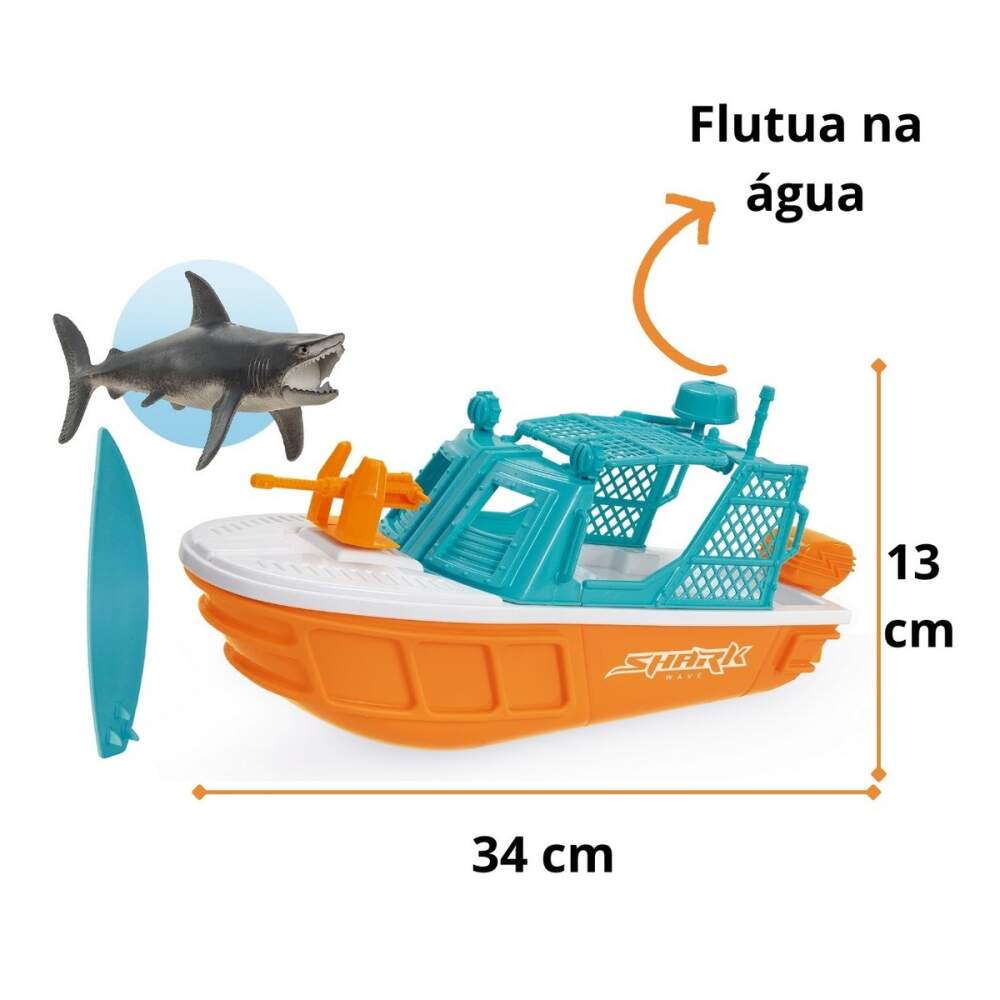 Barco de Brinquedo com Tubarão que Flutua de Verdade Usual Barco de Brinquedo com Tubarão que Flutua de Verdade Usual 0 avaliações | Dê a sua avaliação! Referência: 467 Modelo/Marca: Barco de Brinquedo Lanha com Tubarão de Brincar na Água/Usual R$ 61,30 ou 3x de R$ 21,38 sem juros ou em até 12x de R$ 6,53 no cartão Comprar Indicar este produto Deixar um comentário Boleto Bancário Parcelas 1x de R$ 64,13sem juros 2x de R$ 32,07sem juros 3x de R$ 21,38sem juros 4x de R$ 17,85 5x de R$ 14,66 6x de R$ 12,22 7x de R$ 10,69 8x de R$ 9,36 9x de R$ 8,53 10x de R$ 7,74 11x de R$ 7,03 12x de R$ 6,53 Barco Infantil de Brinquedo que Flutua de Verdade na águaUm super barco de combate, cheio de detalhes e acessórios. O Barquinho Shak Wave flutua com estabilidade, ideal para a brincadeira na piscina ou banheira. A diversão está garantida!Especificações:Fabricante: Usual Brinquedos- Recomendado a partir de 3 anos- Dimensões da Embalagem (CLA): 40,5 x 12 x 18 cm- Dimensões do Produto (CLA): 34 x 13 x 12 cm- Marca: Usual Brinquedos- Referência: 470- Certificado de Segurança: INMETRO Compulsório 006456/2019Itens Inclusos:1 x Barco1 x Dinossauro de Brinquedo