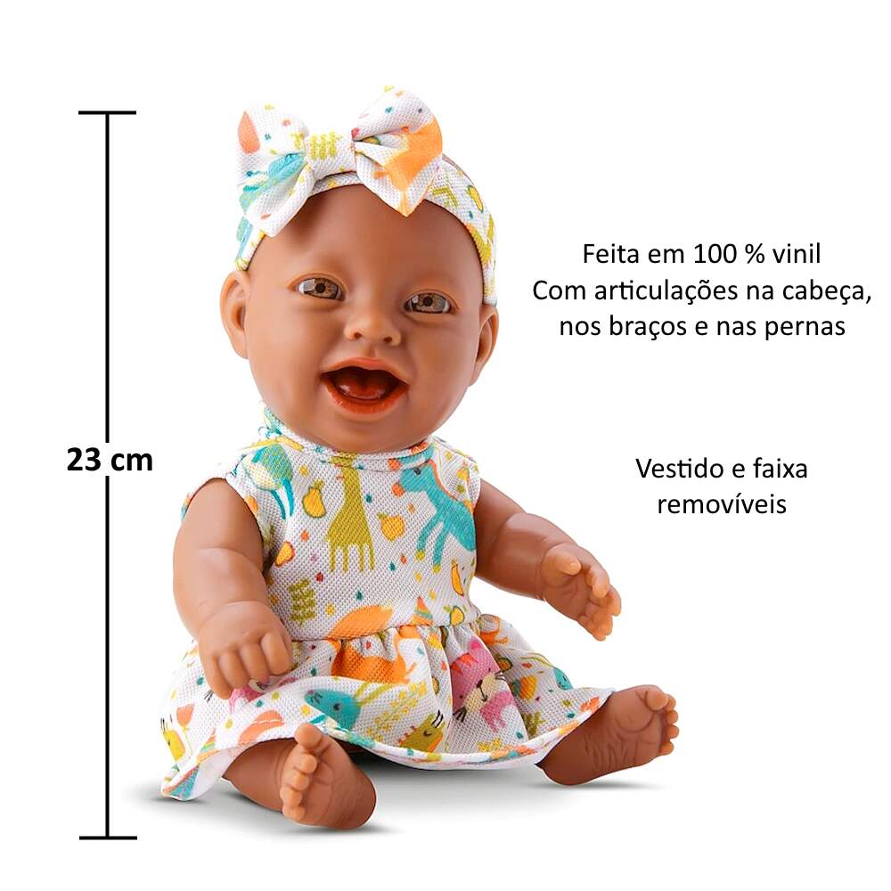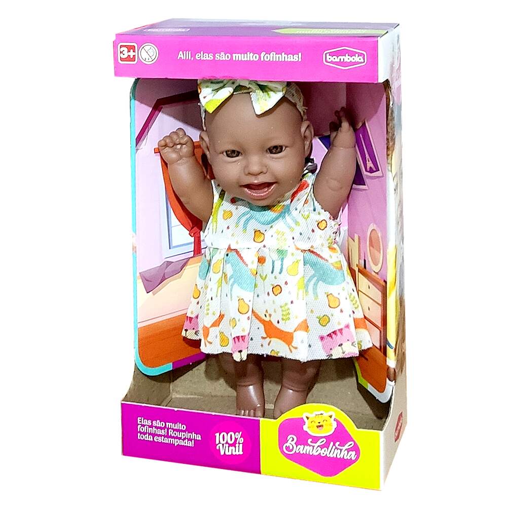 Boneca Bebê Realista Vinil Bambolinha Negra Roupa Estampada na Caixa Bambola Original Boneca Bebê Realista Vinil Bambolinha Negra Roupa Estampada na Caixa Bambola Original 0 avaliações | Dê a sua avaliação! Referência: BAM742 Modelo/Marca: Boneca Bebê Negra de Vestido e Faixa Articulada Bambolinha/Bambola R$ 37,97 ou 3x de R$ 13,24 sem juros ou em até 7x de R$ 6,62 no cartão Comprar Indicar este produto Deixar um comentário Boleto Bancário Parcelas 1x de R$ 39,72sem juros 2x de R$ 19,86sem juros 3x de R$ 13,24sem juros 4x de R$ 11,06 5x de R$ 9,08 6x de R$ 7,57 7x de R$ 6,62 Boneca Bebê Negra de Vestido Estampado e Faixa Bambolinha ArticuladaA boneca Bambolinha da Bambola é um brinquedo fofo e divertido para crianças de todas as idades. É feita de materiais de alta qualidade, segura e cheia de detalhes para brincar. Possui 23 cm de altura, vestido e faixa removíveis, e é fabricada em 100% vinil, que dá maciez e uma textura agradável ao brinquedo. Faz parte de uma coleção de bonecas super fofinhas, cada uma com um tema diferente, para você amar e cuidar com muito carinho!Característica:Marca: BambolaModelo: BambolinhaReferência: 742Tamanho (aprox.): 14 x 8 x 23 cm (C x L x A)Idade Recomendada: A partir de 3 anosMaterial: 100% VinilCertificado INMETRO: Compulsório 009289/2022Conteúdo da Embalagem:1x Boneca Bambolinha
