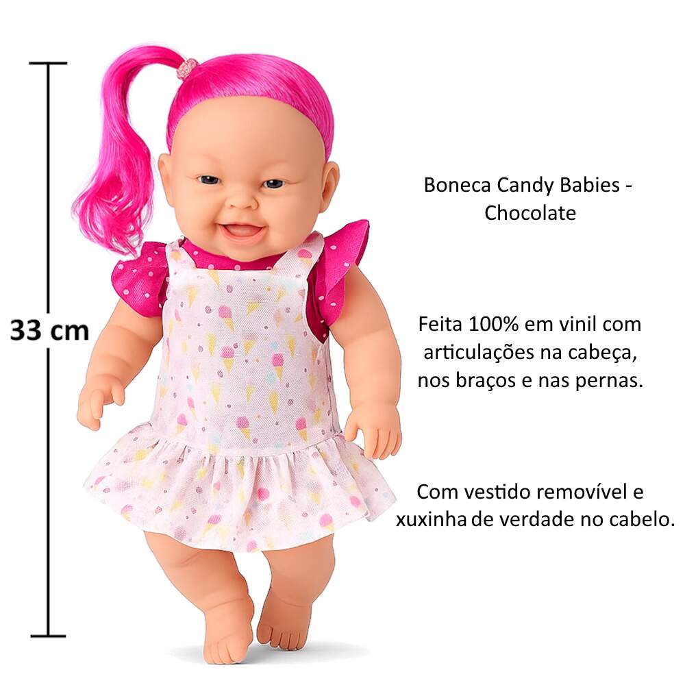 Boneca Candy Babies Sorvete Ice Cream Cabelo Rosa Xuxinha na Caixa Original Bambola Boneca Candy Babies Sorvete Ice Cream Cabelo Rosa Xuxinha na Caixa Original Bambola 0 avaliações | Dê a sua avaliação! Referência: BAM796 Modelo/Marca: Boneca Bebê de Cabelo Rosa com Vestido de Sorvete e Xuxinha Candy Babies/Generic R$ 47,24 ou 3x de R$ 16,47 sem juros ou em até 9x de R$ 6,57 no cartão Comprar Indicar este produto Deixar um comentário Boleto Bancário Parcelas 1x de R$ 49,42sem juros 2x de R$ 24,71sem juros 3x de R$ 16,47sem juros 4x de R$ 13,76 5x de R$ 11,30 6x de R$ 9,42 7x de R$ 8,24 8x de R$ 7,21 9x de R$ 6,57 Boneca Bebê de Cabelo Rosa com Vestido de Sorvete e Xuxinha Candy BabiesA boneca Candi Babies Ice Cream da Bambola é um brinquedo fofo e divertido para crianças de todas as idades. É feita de materiais de alta qualidade, segura e cheia de detalhes para brincar ou decorar o quarto da criança. Possui 33 cm de altura, cabelos coloridos, cor da pele clara, vestido removível, xuxinha de verdade no cabelo e é fabricada em 100% vinil, que dá maciez e uma textura agradável ao brinquedo. Faz parte de uma coleção de bonecas super fofinhas, cada uma com um tema diferente, para você amar e cuidar com muito carinho!Característica:Marca: BambolaModelo: Candi Babies Ice CreamReferência: 796Tamanho (aprox.): 15 x 10 x 33 cm (C x L x A)Idade Recomendada: A partir de 3 anosMaterial: 100% VinilCertificado INMETRO: Compulsório 009289/2022Conteúdo da Embalagem:1x Boneca Candi Babies Ice Cream