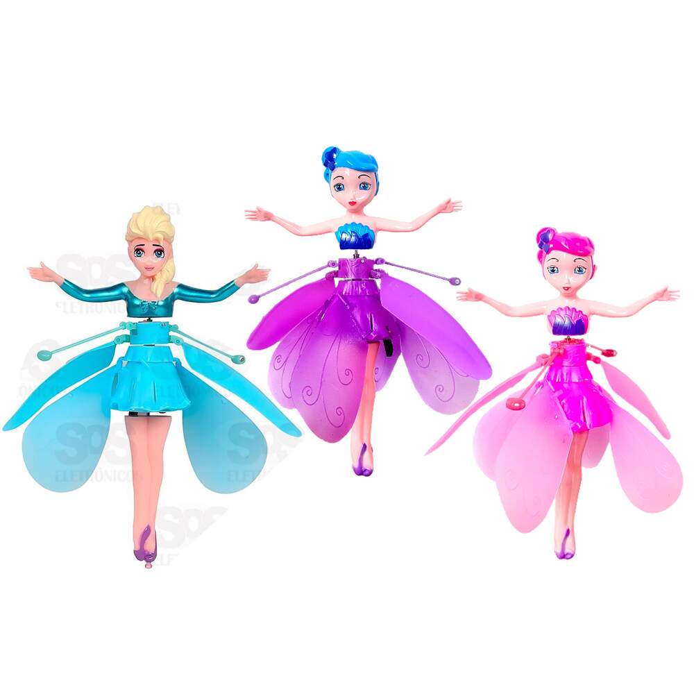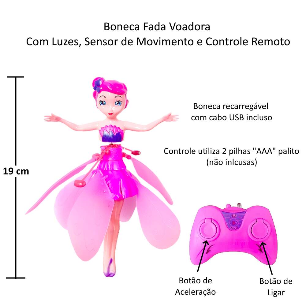 Boneca que Voa de Controle Remoto Fada Voadora Recarregável com Luzes LED e Sensor de Movimento