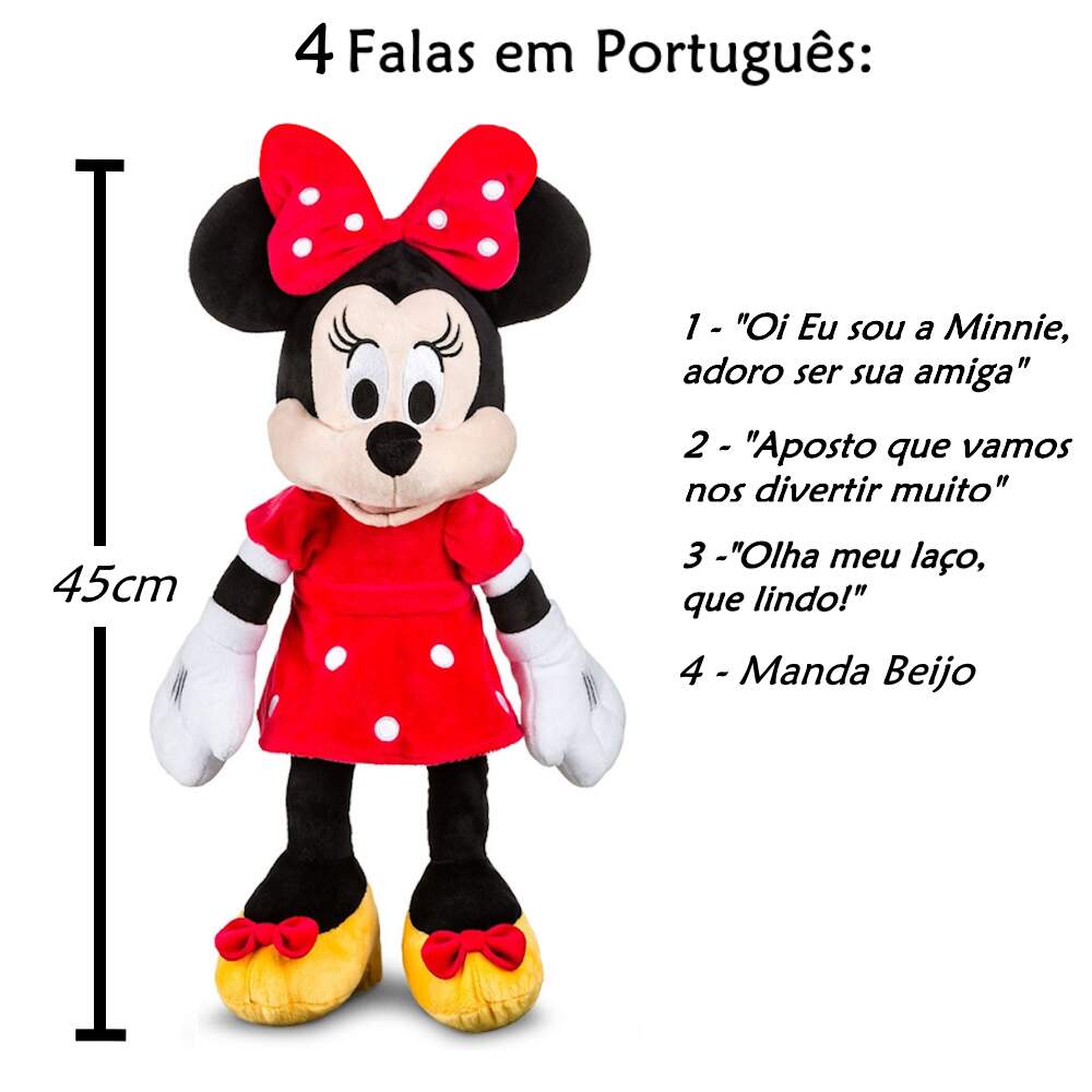 Kit Especial Pelúcia Minnie falante de 45 cm com Luz + Tiara com Orelhas da Minnie