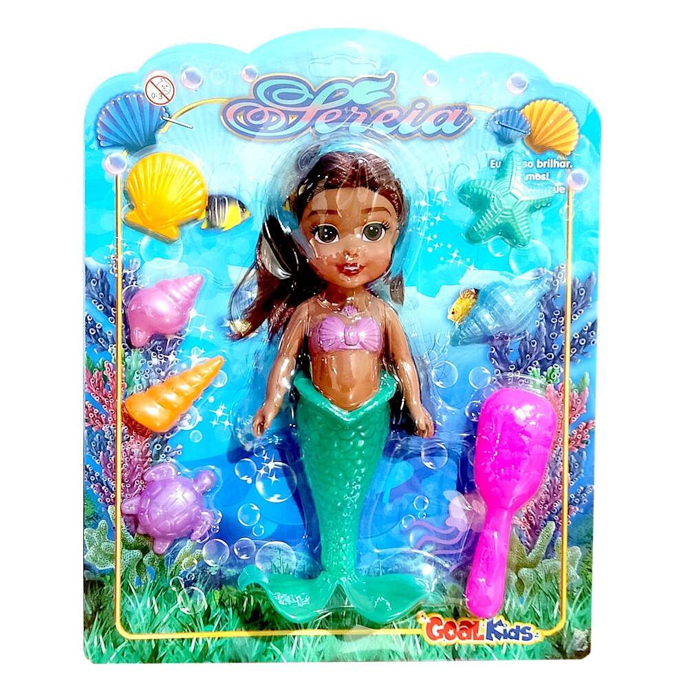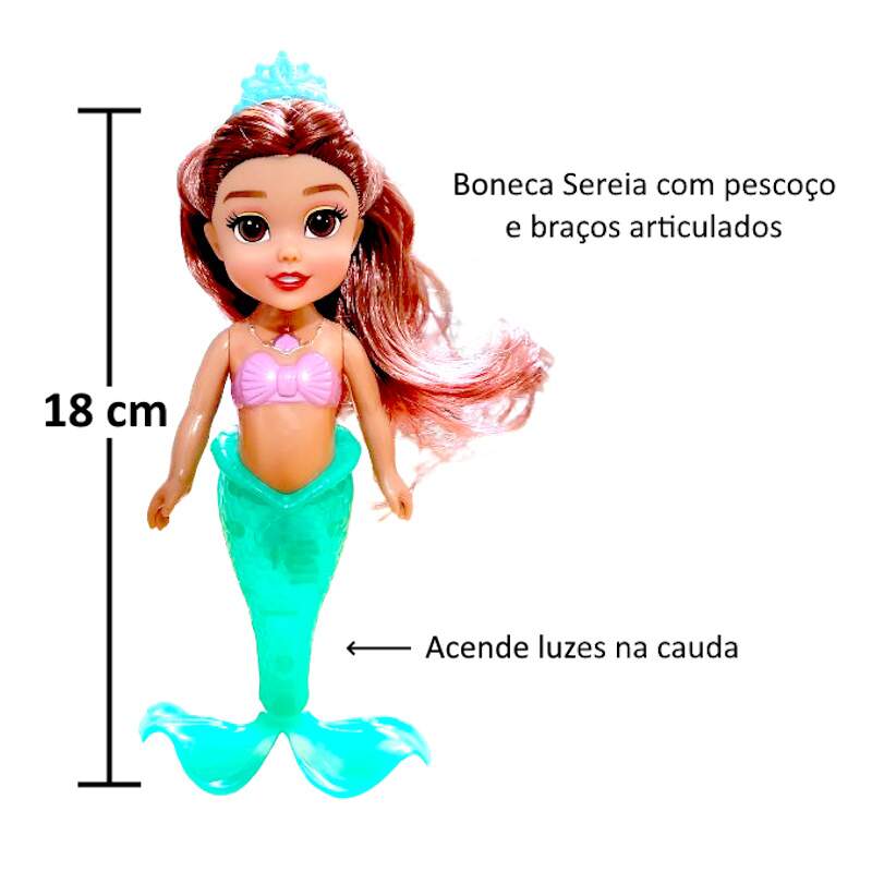 Boneca Pequena Sereia com Cauda iluminada 7 Acessórios Braços Articulados Goal Kids Boneca Pequena Sereia com Cauda iluminada 7 Acessórios Braços Articulados Goal Kids 0 avaliações | Dê a sua avaliação! Referência: GK2329morena Modelo/Marca: Boneca Sereia Morena Articulada com Cauda iluminada Goal Kids/Goal Kids R$ 22,90 ou 3x de R$ 7,99 sem juros ou em até 4x de R$ 6,67 no cartão Comprar Indicar este produto Deixar um comentário Boleto Bancário Parcelas 1x de R$ 23,96sem juros 2x de R$ 11,98sem juros 3x de R$ 7,99sem juros 4x de R$ 6,67 Boneca Ariel Morena Sereia com Luz e AcessóriosBoneca Sereia Morena com luz na calda e longos cabelos. A Ariel vem acompanhada de uma escova de cabelo e seis forminhas de elementos do mar. A cauda da Ariel acende e pisca com luzes coloridas, É uma ótima opção de presente e para decoração de festas infantis, pois ele fica em pé com a cauda também. As crianças vão amar essa novidade!Especificações:- Fabricante: Goal Kids- Referência: GK2329- Idade recomendada: a partir de 3 anos- Utilizar 3 baterias LR44 já inclusas- Não deve ir na água devido ao sistema eletrônico de Luzes- INMETRO CE-BRI/BRICS 00298-16 NM 300/2002Itens inclusos:1x Boneca Sereia1x Escova de cabelo6x Forminhas do mar