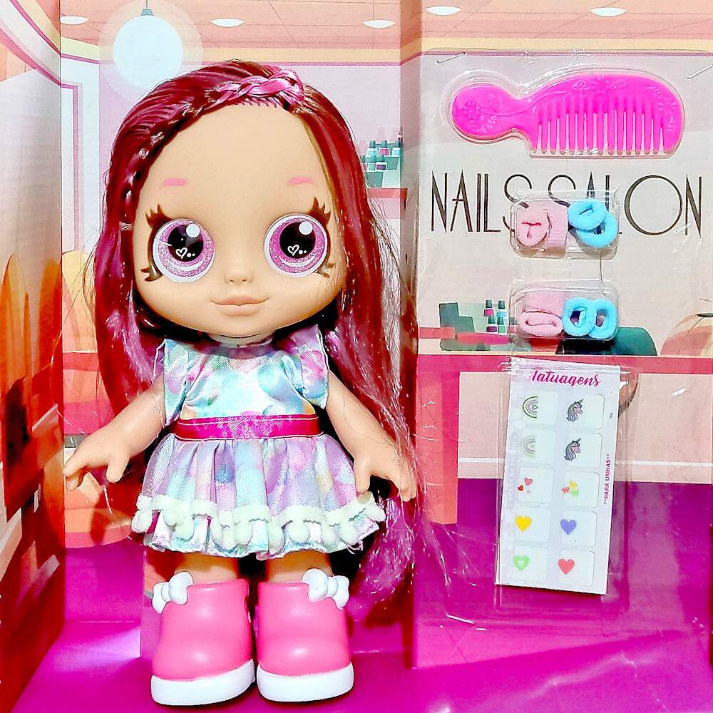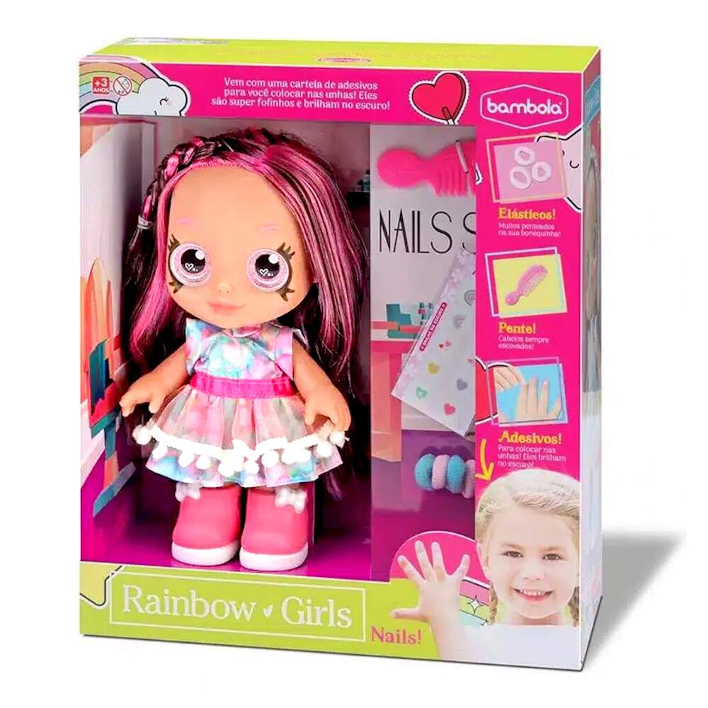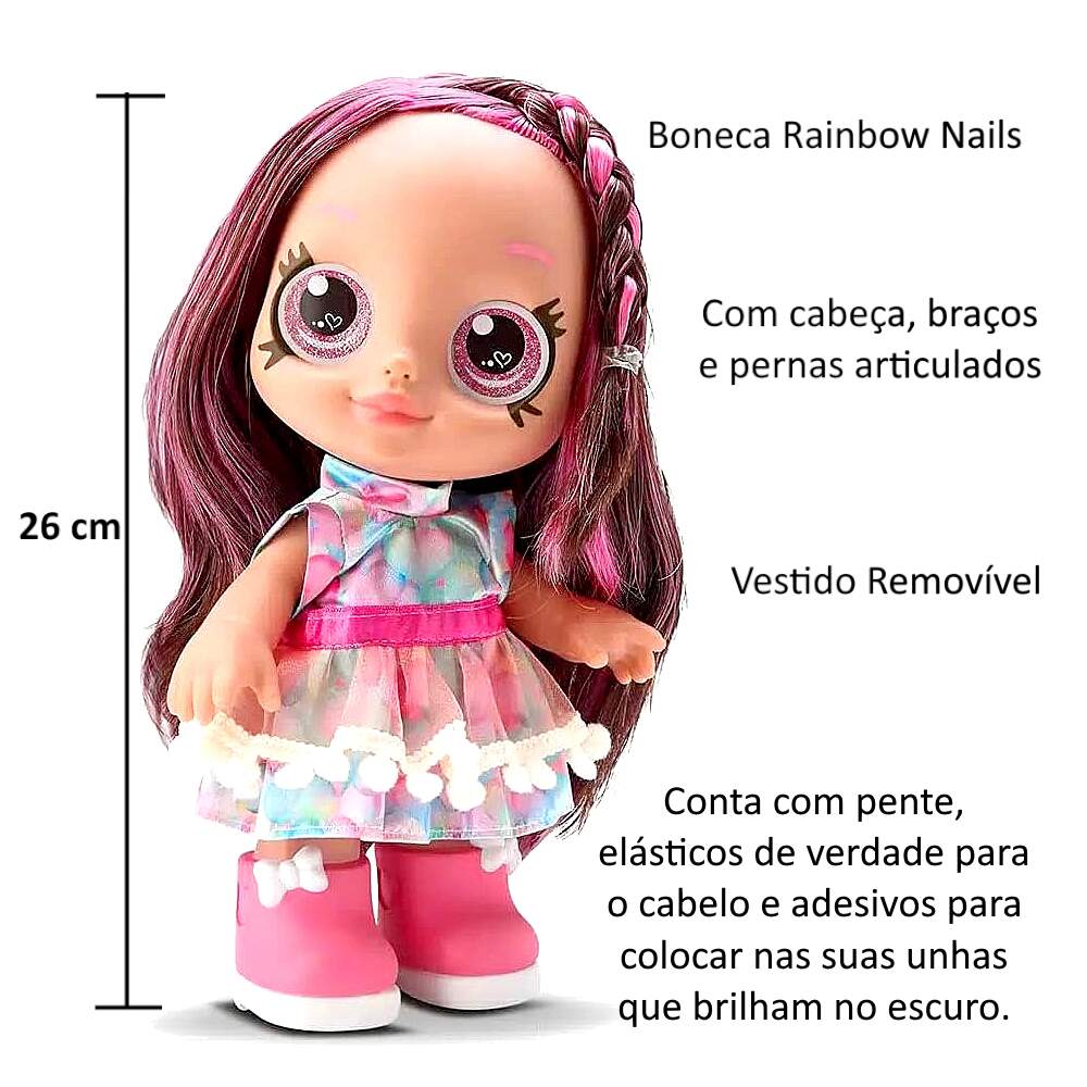 Boneca De Cabelo Colorido Com Acessórios de Unhas e Cabelo Rainbow Girls Nails
