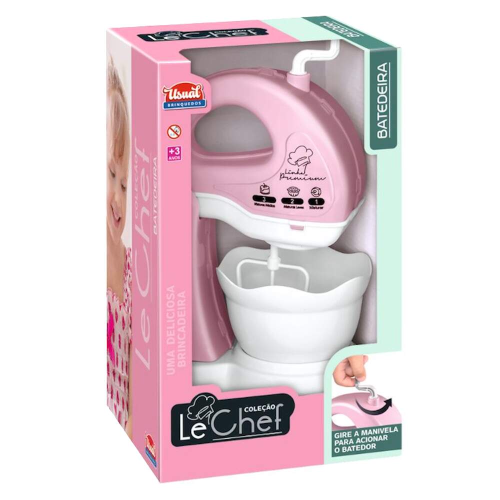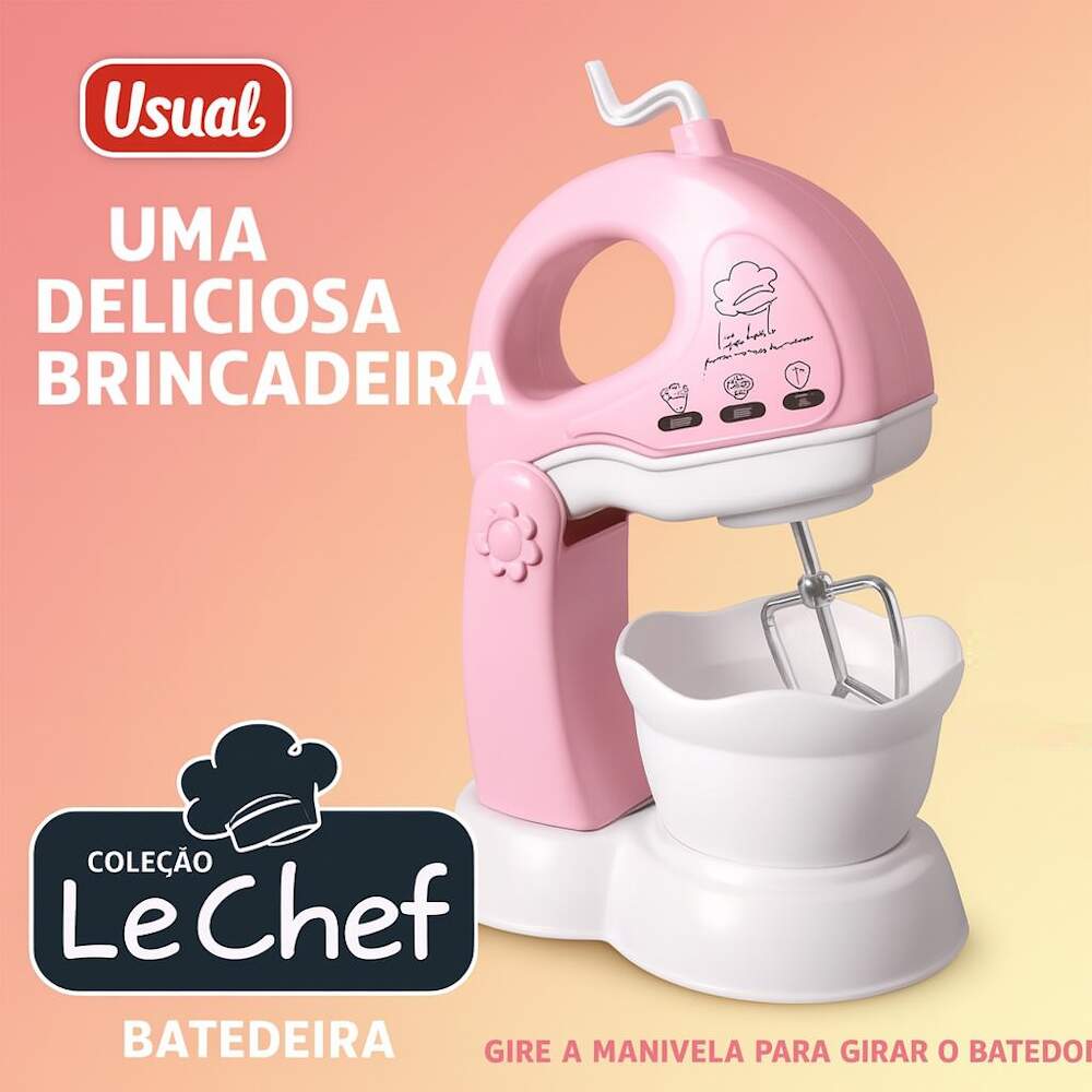 Brinquedo Batedeira de Bolo com Tigela Movimentos Mini Chef 0 avaliações | Dê a sua avaliação! Referência: USU731 Modelo/Marca: Batedeira de Brinquedo Infantil Com Função de Bater Branco E Rosa Le Chef Usual/Usual Brinquedos R$ 53,88 ou 3x de R$ 18,79 sem juros ou em até 11x de R$ 6,18 no cartão Comprar Indicar este produto Deixar um comentário Boleto Bancário Parcelas 1x de R$ 56,37sem juros 2x de R$ 28,18sem juros 3x de R$ 18,79sem juros 4x de R$ 15,69 5x de R$ 12,89 6x de R$ 10,74 7x de R$ 9,40 8x de R$ 8,22 9x de R$ 7,50 10x de R$ 6,80 11x de R$ 6,18 Batedeira de Brinquedo Infantil Com Função de Bater Branco E Rosa Le Chef UsualA Batedeira de Brinquedo Infantil Le Chef da Usual é perfeita para tornar a brincadeira de cozinha ainda mais realista e divertida. Com design delicado nas cores branco e rosa, ela possui a função de bater de verdade, simulando o funcionamento de uma batedeira real. Fácil de manusear e segura para as crianças, estimula a imaginação, a coordenação motora e o faz de conta. Ideal para complementar o kit de cozinha infantil, é um brinquedo educativo que proporciona momentos de criatividade e diversão no dia a dia das crianças.Vídeo de demonstração no anúncio ou em nossas redes e canais Flix Mobile / Flix M / @flixm.oficialEspecificações:Fabricante: Usual BrinquedosReferencia: 731Modelo: Batedeira Le Chef RosaComposição: Polipropileno (PP)Indicado para crianças maiores de 3 anosINMETRO: Compulsório 000267 2020Item Incluso:1x Batedeira