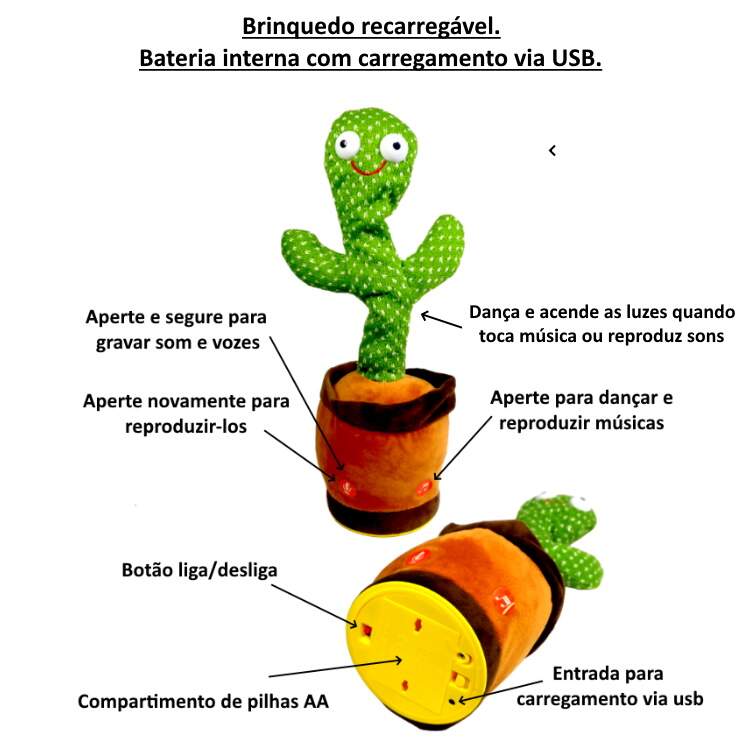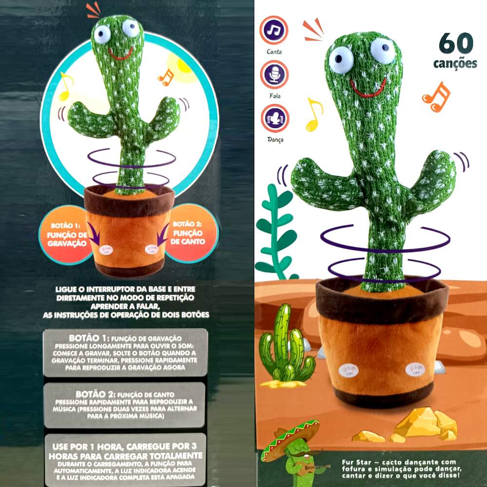 Cacto Dançante e Falante Brinquedo que Repete Falas com Músicas e Movimentos