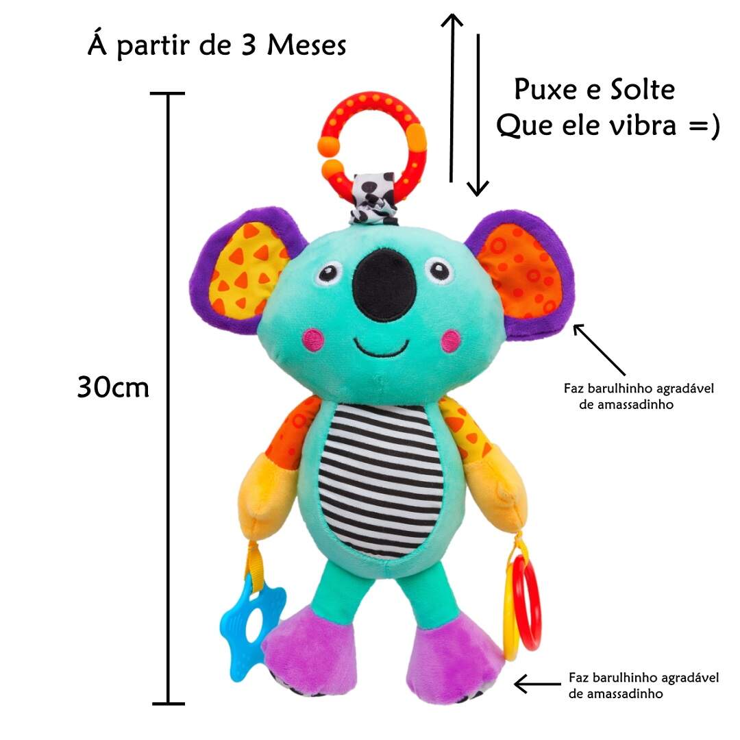 Brinquedo Interativo Bebê Coala Atividades Colorido BUBA Brinquedo Interativo Bebê Coala Atividades Colorido BUBA 0 avaliações | Dê a sua avaliação! Referência: 09803 Modelo/Marca: Pelúcia de Atividades/Buba R$ 102,73 ou 3x de R$ 35,83 sem juros ou em até 12x de R$ 10,94 no cartão Comprar Indicar este produto Deixar um comentário Boleto Bancário Parcelas 1x de R$ 107,48sem juros 2x de R$ 53,74sem juros 3x de R$ 35,83sem juros 4x de R$ 29,92 5x de R$ 24,57 6x de R$ 20,48 7x de R$ 17,92 8x de R$ 15,68 9x de R$ 14,29 10x de R$ 12,97 11x de R$ 11,79 12x de R$ 10,94 Pelúcia de Atividades Coala Educativo BubaA Pelúcia Coala de Atividades da Buba é um brinquedo completo e multiuso que pode ser pendurado no carrinho ou no berço como enfeite, entretenimento ou simplesmente pode ser entregue a criança para brincar com segurança. Os bebês só enxergam cores contrastantes, por isso é ideal para o desenvolvimento visual dos pequenos. Possui mordedor, uma argola que ao puxar e soltar a pelúcia vibra, as pernas e orelhas fazem barulho suave de amassadinho. Especificações:Cód. Barras: 7899525698037Marca: BubaModelo: 09803Idade: recomendado para crianças acima de 3 mesesDimensões: aproximadamente 23 x 14 x 30 cm - (Alt-Comp-Larg)Peso: 138gCERTIFICADO INMETRO: CE-BRI/INNAC-00110-03AItens inclusos: 1 Pelúcia de Atividades