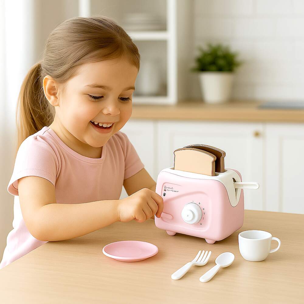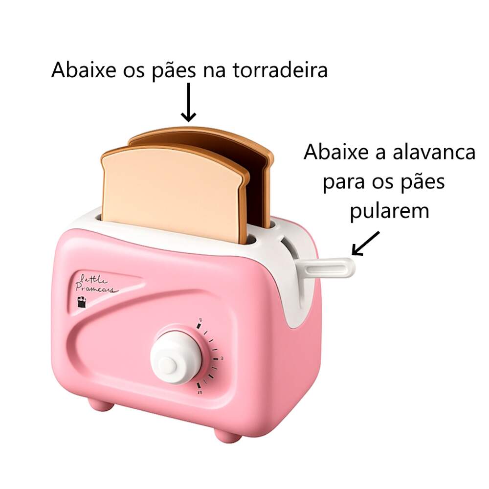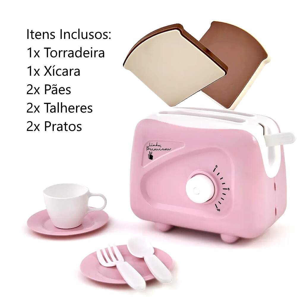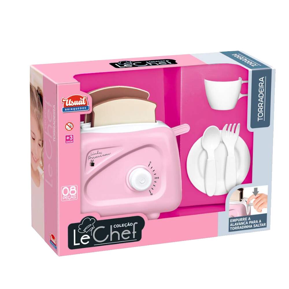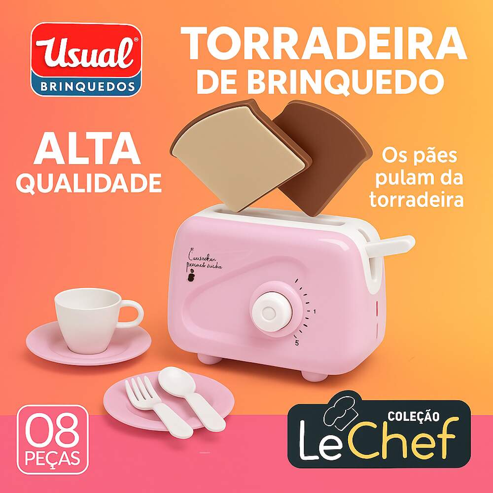 Brinquedo Torradeira Infantil kit Cozinha Chá Faz de Conta 0 avaliações | Dê a sua avaliação! Referência: USU734 Modelo/Marca: Torradeira Com Pão que Pula Infantil Rosa New Le Chef Usual Com Acessórios/Usual Brinquedos R$ 51,28 ou 3x de R$ 17,88 sem juros ou em até 10x de R$ 6,47 no cartão Comprar Indicar este produto Deixar um comentário Boleto Bancário Parcelas 1x de R$ 53,65sem juros 2x de R$ 26,82sem juros 3x de R$ 17,88sem juros 4x de R$ 14,94 5x de R$ 12,27 6x de R$ 10,22 7x de R$ 8,95 8x de R$ 7,83 9x de R$ 7,13 10x de R$ 6,47 Torradeira Com Pão que Pula Infantil Rosa New Le Chef Usual Com AcessóriosA Torradeira Infantil Rosa New Le Chef da Usual Brinquedos é uma adição encantadora e divertida para a cozinha de brinquedo das crianças. Com um design delicado na cor rosa, ela simula uma torradeira de verdade e vem acompanhada de pãezinhos que pulam quando prontos, tornando o faz de conta ainda mais realista e interativo. O brinquedo inclui acessórios que complementam a brincadeira, estimulando a imaginação, a coordenação motora e a criatividade. Leve, segura e fácil de manusear, é perfeita para crianças que adoram imitar as atividades da cozinha de forma lúdica e educativa.Vídeo de demonstração no anúncio ou em nossas redes e canais Flix Mobile / Flix M / @flixm.oficialEspecificações:Fabricante: Usual BrinquedosReferencia: 734Modelo: Kit Torradeira com Acessórios Le ChefComposição: Polipropileno (pp)Indicado para crianças maiores de 3 anosINMETRO: Compulsório 000267/2020Item Incluso:1x Torradeira2x Talheres2x Pratos1x Xícaras2x Pães