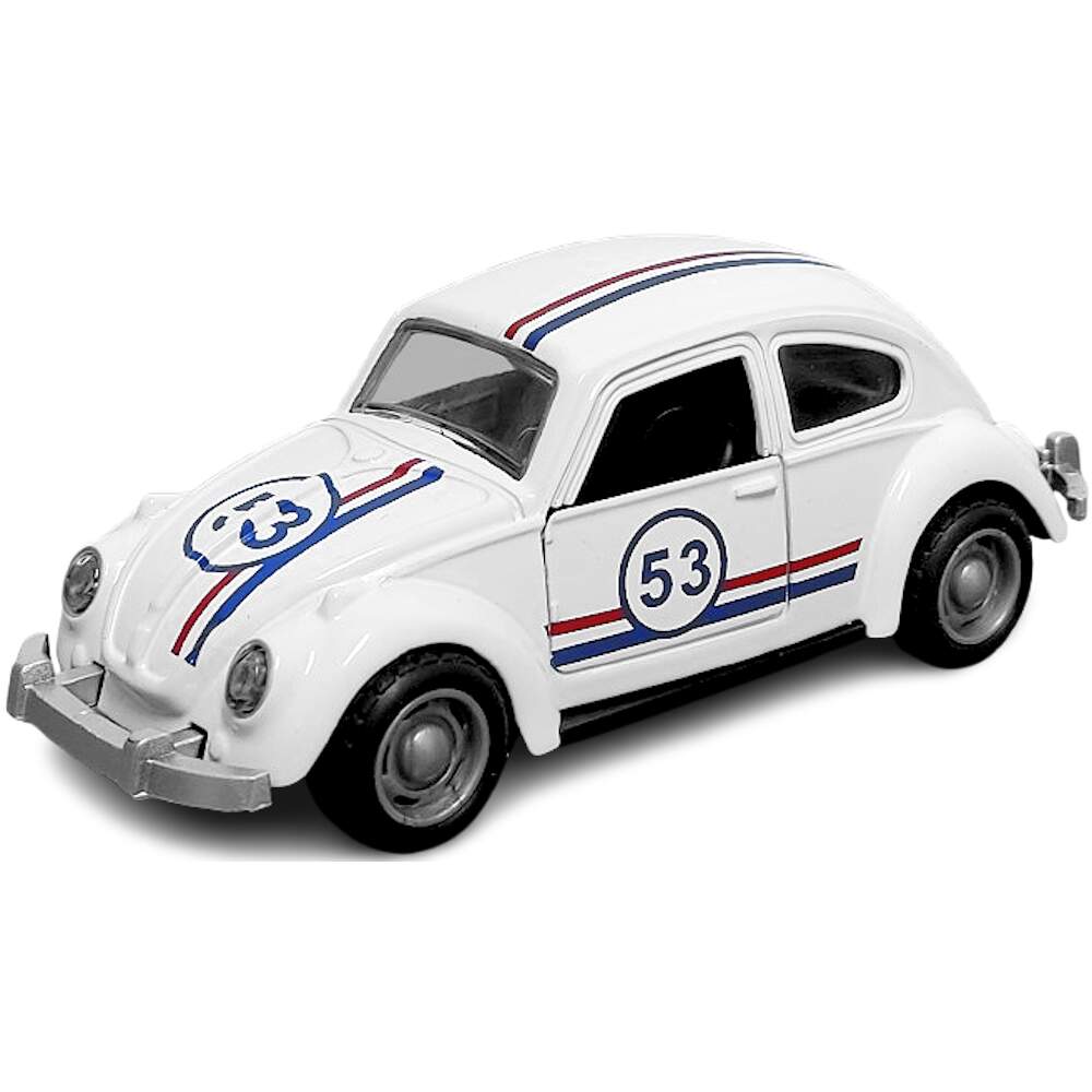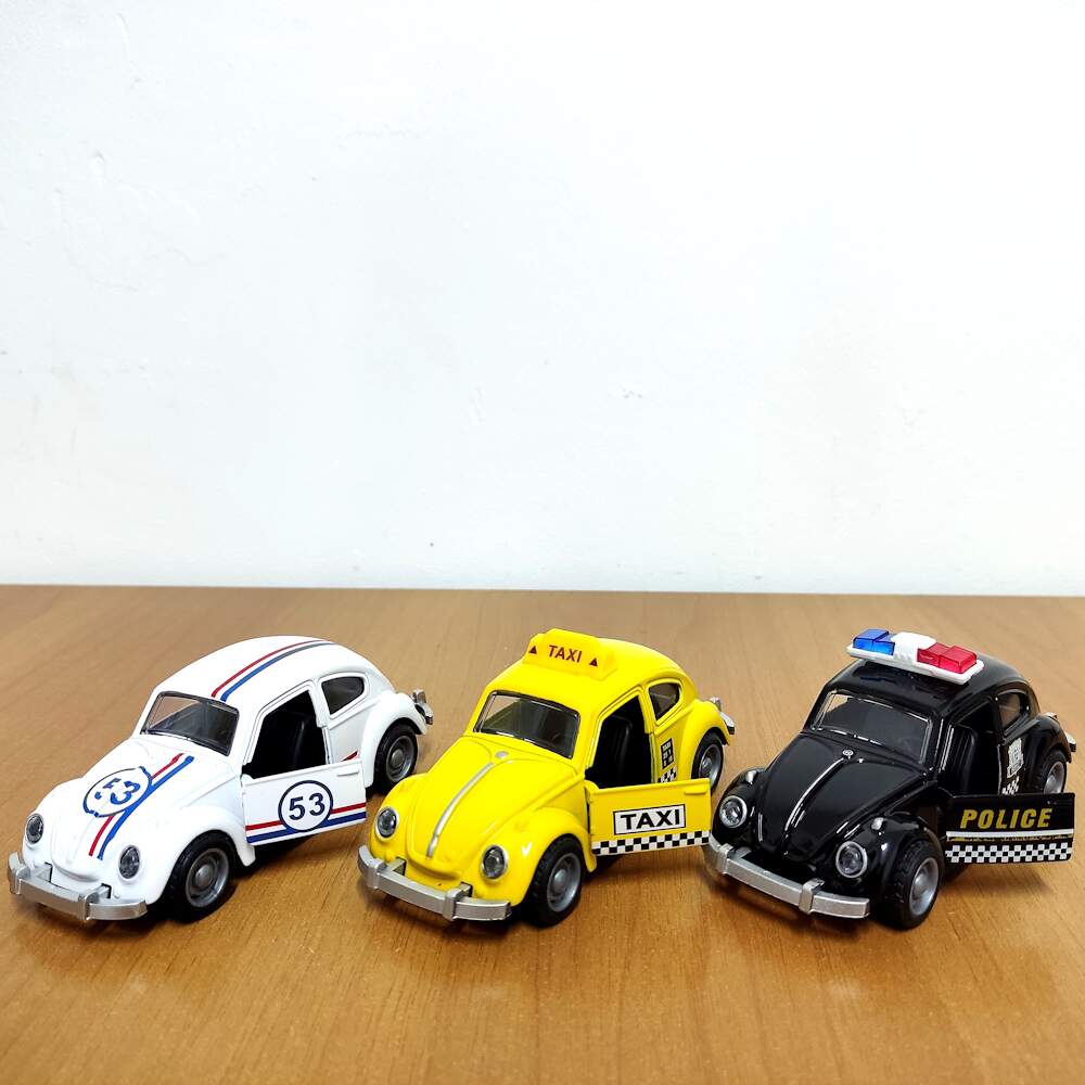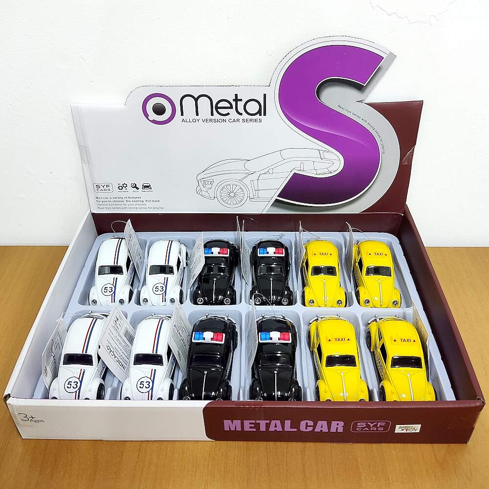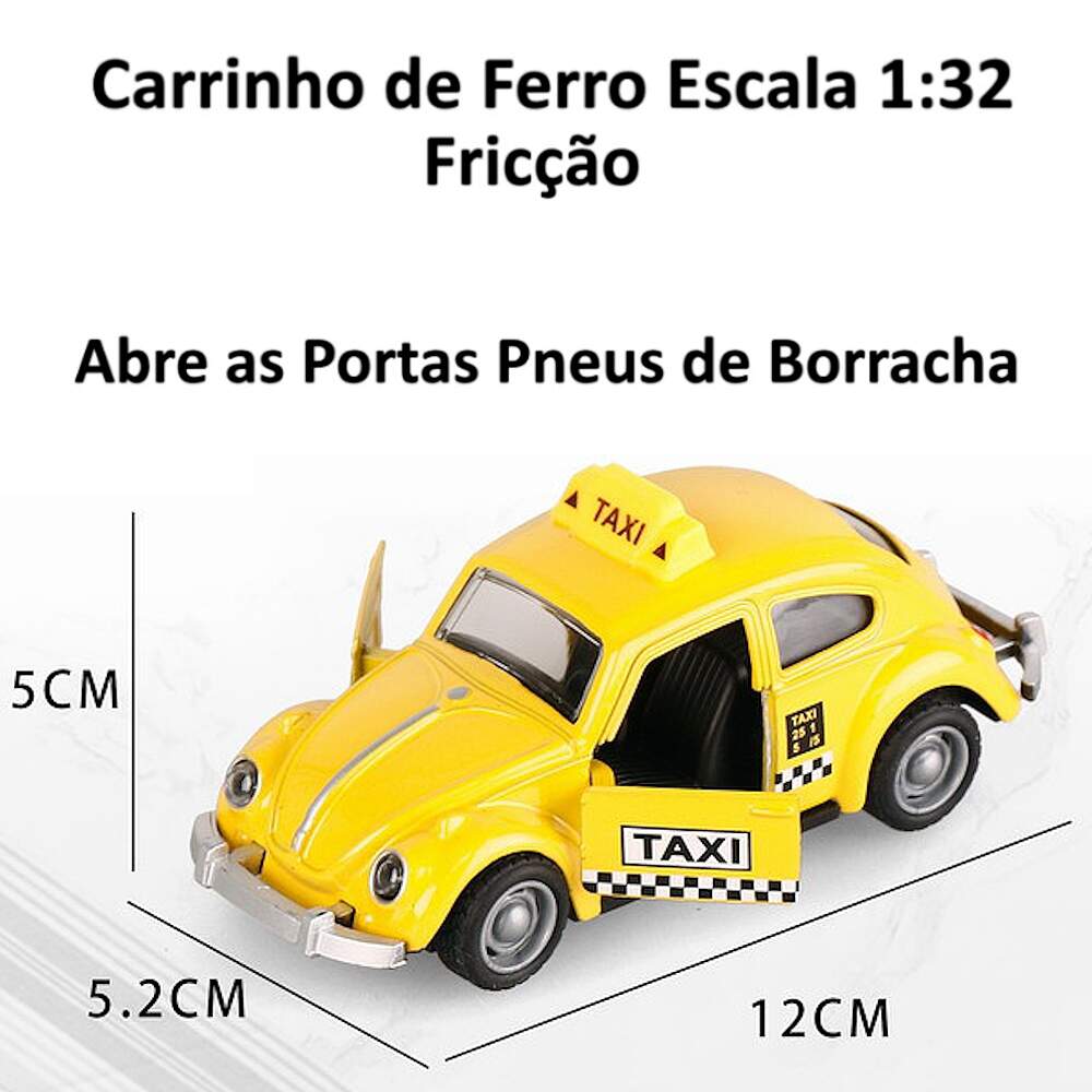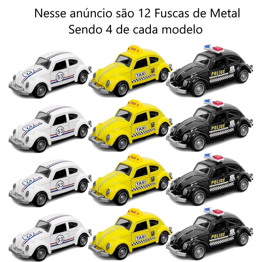 Caixa com 12 Carrinhos em Miniatura de Ferro Fusca Polícia Taxi e Herbie Corrida com Abertura de Portas com Caixa Display