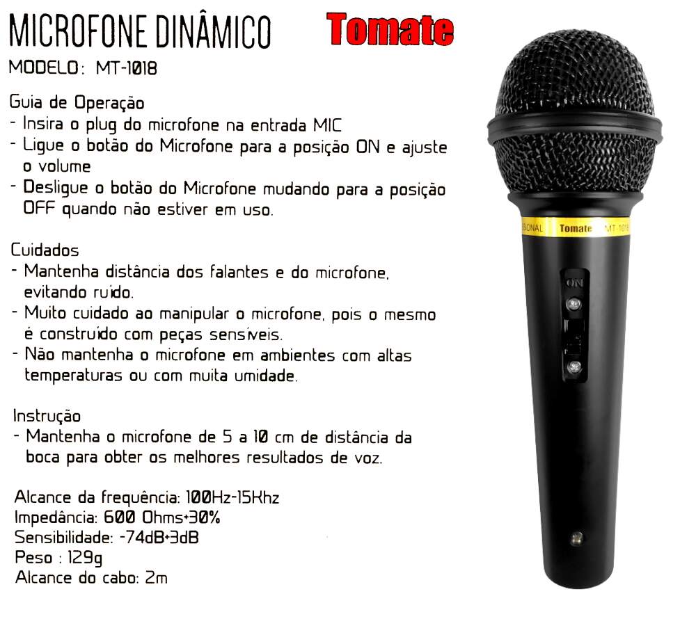 Sobre o Microfone: Solte a voz com o microfone de alta qualidade da TOMATE, o Microfone vem equipado com um cabo de 2.5 Metros garantindo mais mobilidade durante a cantoria ou apresentação e conta com um belo acabamento e reprodução vocal com clareza, além de ser um ótimo custo benefício.