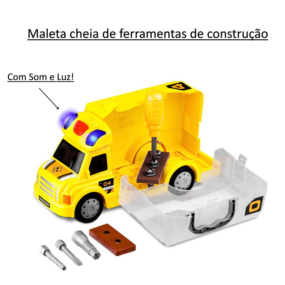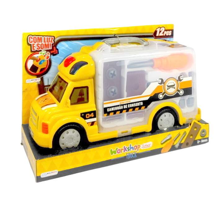 Caminhão de Manutenção Infantil com Som Sirene e Luz e Chave de Montar Caminhão de Manutenção Infantil com Som Sirene e Luz e Chave de Montar 0 avaliações | Dê a sua avaliação! Referência: BR899 Modelo/Marca: Caminhão de Construção Workshop Junior Truck Amarelo/Multikids R$ 84,34 ou 3x de R$ 29,41 sem juros ou em até 12x de R$ 8,98 no cartão Comprar Indicar este produto Deixar um comentário Boleto Bancário Parcelas 1x de R$ 88,24sem juros 2x de R$ 44,12sem juros 3x de R$ 29,41sem juros 4x de R$ 24,57 5x de R$ 20,17 6x de R$ 16,81 7x de R$ 14,71 8x de R$ 12,87 9x de R$ 11,73 10x de R$ 10,65 11x de R$ 9,68 12x de R$ 8,98 Caminhão de Construção Com Som Luz e Maleta de FerramentasCom o Caminhão de Construção Workshop Junior Truck da Multikids a criançada vai se divertir. O caminhão vira uma super maleta com 12 peças de manutenção para levar a onde quiser. Com luz e som a brincadeira fica ainda mais divertida e realista. Fabricado com material de alta qualidade, possui certificado do INMETRO para maior segurança da criança.Características:Marca: MultikidsModelo: Caminhão Workshop Junior TruckReferência: BR899Tamanho: 18 cm de Altura x 35 cm de Comprimento x 12 cm de LarguraPeso: 650 gIdade Recomendada: A partir de 3 anosAlimentação (Som e Luz): 2 baterias AG13 (inclusas)Certificado INMETRO: Compulsório 003146/2021Itens Inclusos:1x Caminhão12x Acessórios
