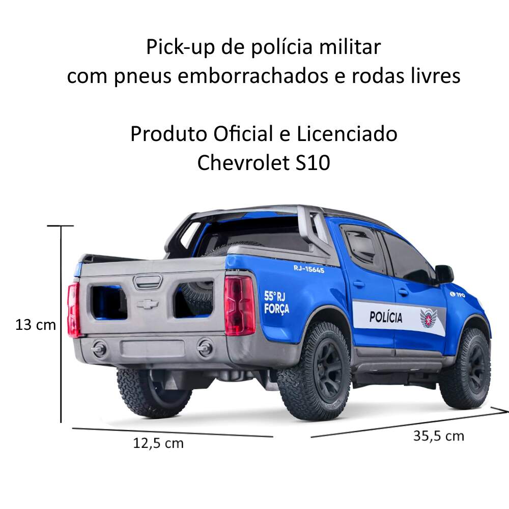Caminhonete Pick-up S10 Carrinho Polícia Militar do Rio Azul Caminhonete Pick-up S10 Carrinho Polícia Militar do Rio Azul 0 avaliações | Dê a sua avaliação! Referência: RO1148 Modelo/Marca: Carrinho de Polícia Militar RJ Azul Pickup S10 Rodas Livres/Roma R$ 57,44 ou 3x de R$ 20,03 sem juros ou em até 12x de R$ 6,12 no cartão Comprar Indicar este produto Deixar um comentário Boleto Bancário Parcelas 1x de R$ 60,09sem juros 2x de R$ 30,05sem juros 3x de R$ 20,03sem juros 4x de R$ 16,73 5x de R$ 13,74 6x de R$ 11,45 7x de R$ 10,02 8x de R$ 8,77 9x de R$ 7,99 10x de R$ 7,25 11x de R$ 6,59 12x de R$ 6,12 Carrinho de Polícia Militar RJ Azul Pickup S10 Rodas LivresO Carrinho Pickup de Polícia é o brinquedo perfeito para crianças de todas as idades. Possui um design realista cheio de detalhes. Além disso, ele é feito de materiais de alta qualidade, o que garante sua durabilidade e resistência ao desgaste. Se você está procurando um brinquedo que vai proporcionar horas de diversão, o Carrinho de o Pick up de Polícia é a escolha perfeita.Características:Marca: Roma ToysModelo: Pickup de Polícia S10 RJReferência: 1148Tamanho: 35,5 x 13 x 12,5 cm (CxLxA)Idade Recomendada: A partir de 3 anosMaterial: Polipropileno e PoliestirenoCertificado INMETRO: 000170/2021Conteúdo do Pacote:1x Pickup de Polícia Militar RJ S10 Azul