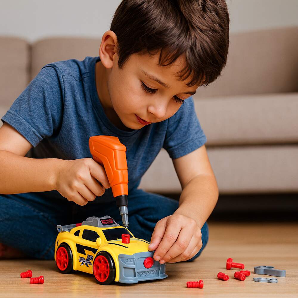 Seu pequeno vira ?chefe de box? e customiza um carro de corrida de verdade na imaginação! São 30 peças incluindo parafusadeira elétrica de dupla direção, permitindo montar e desmontar com facilidade em 2 modos diferentes. Enquanto escolhe peças, troca rodas e adiciona acessórios, a criança exercita coordenação motora, raciocínio lógico, criatividade e autonomia. Componentes resistentes, encaixe preciso e acabamento seguro garantem brincadeira durável e divertida. Ideal para presentear e transformar cada montagem em uma nova máquina de corrida personalizada.