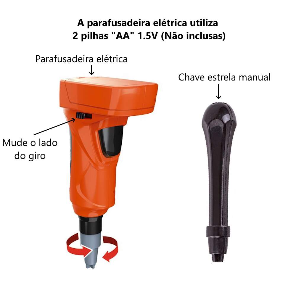 Alimentação Eletrônica: 2 pilhas "AA" para a parafusadeira