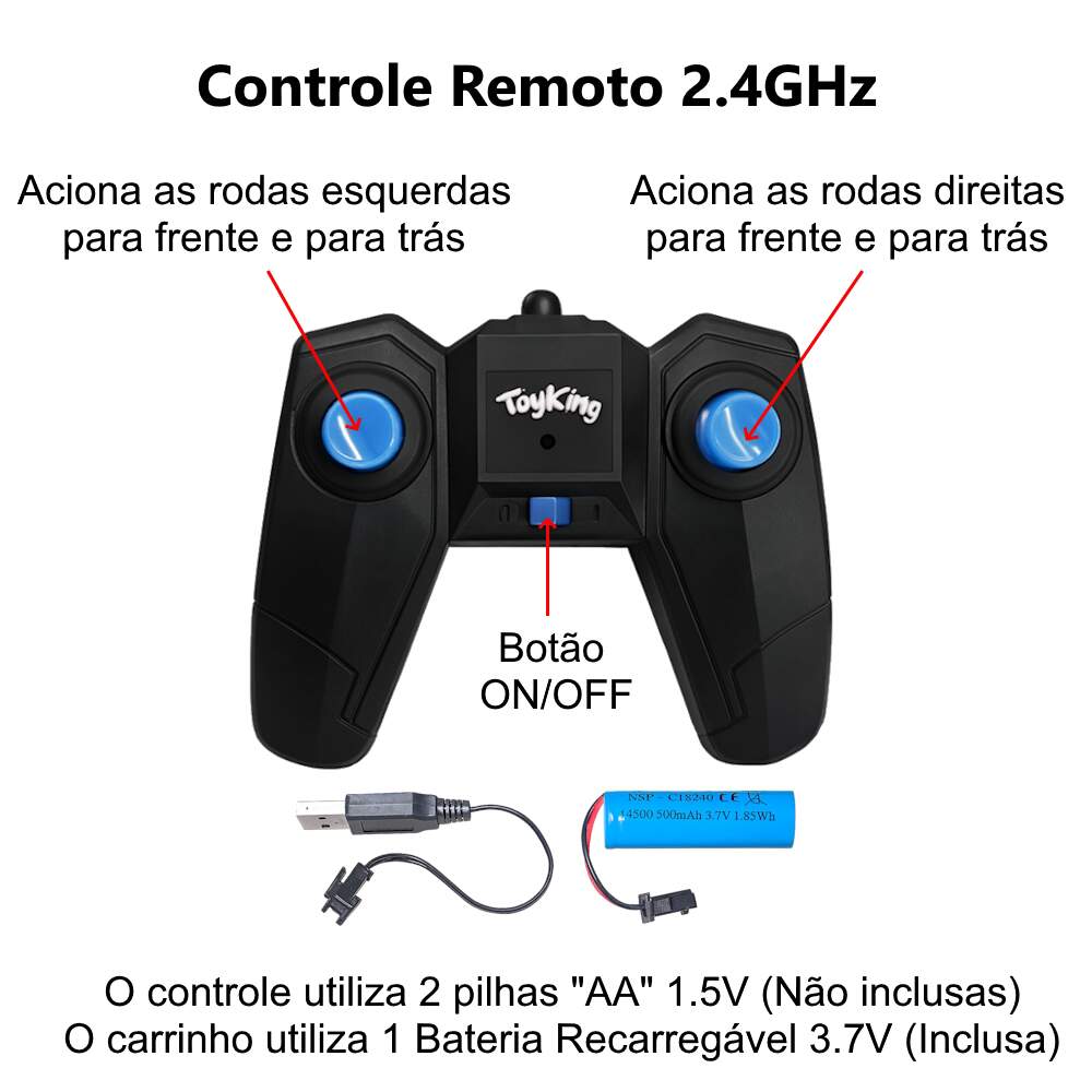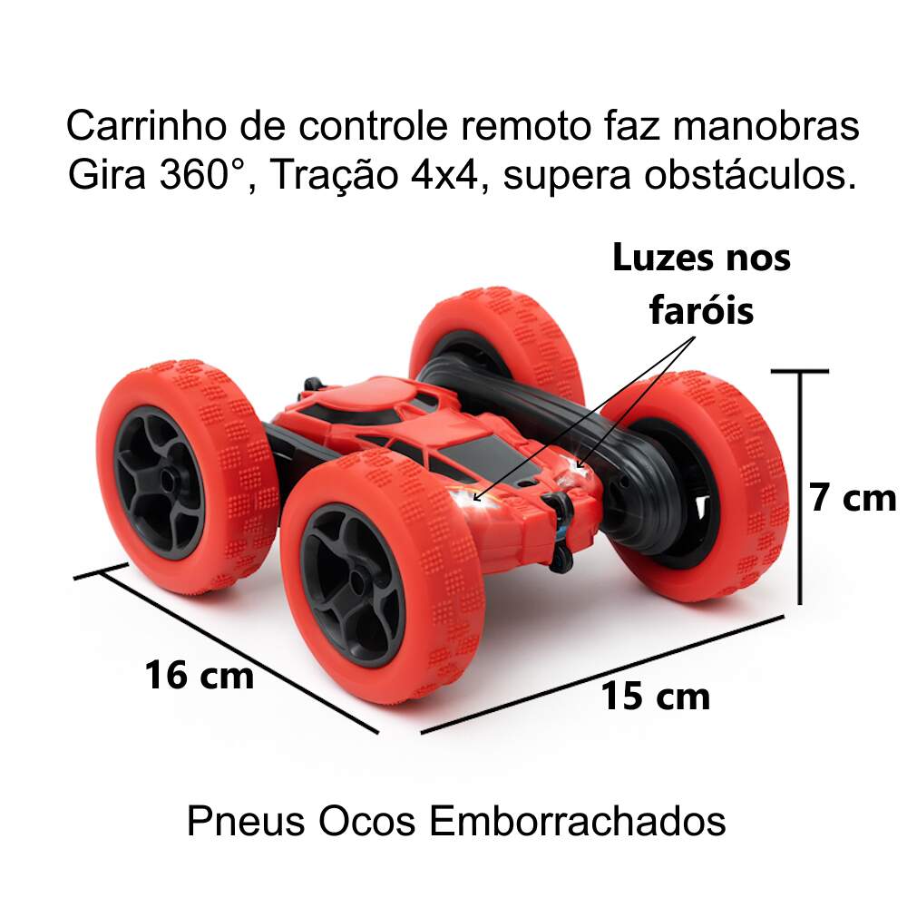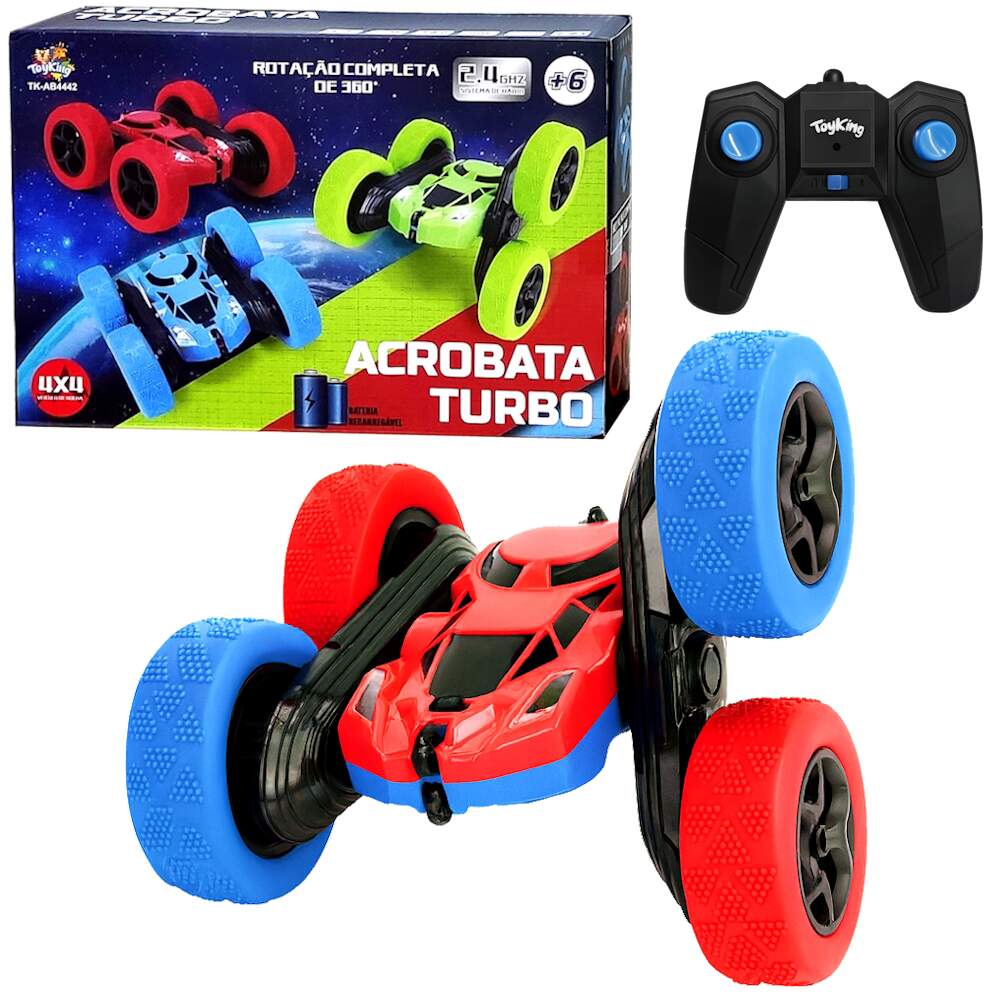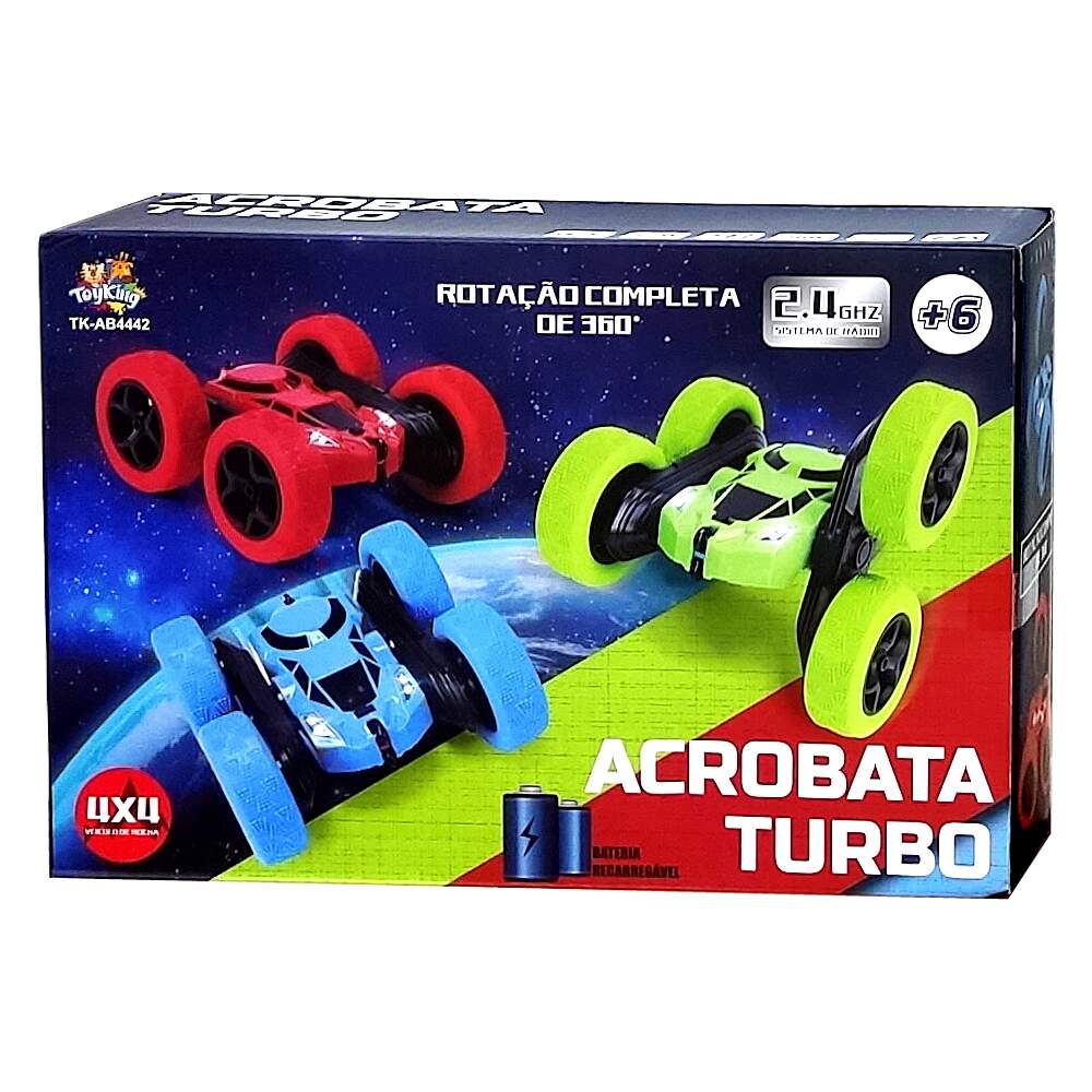 Carrinho Turbo de Controle Remoto 2.4Ghz Acrobata Turbo Infantil 4x4 Recarregável Gira 360° Manobras