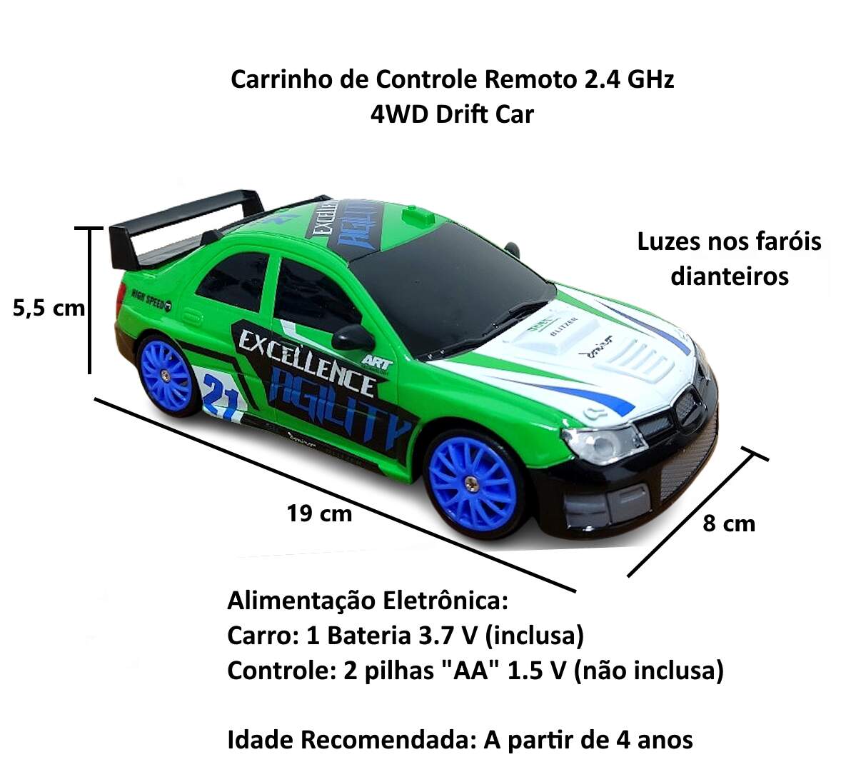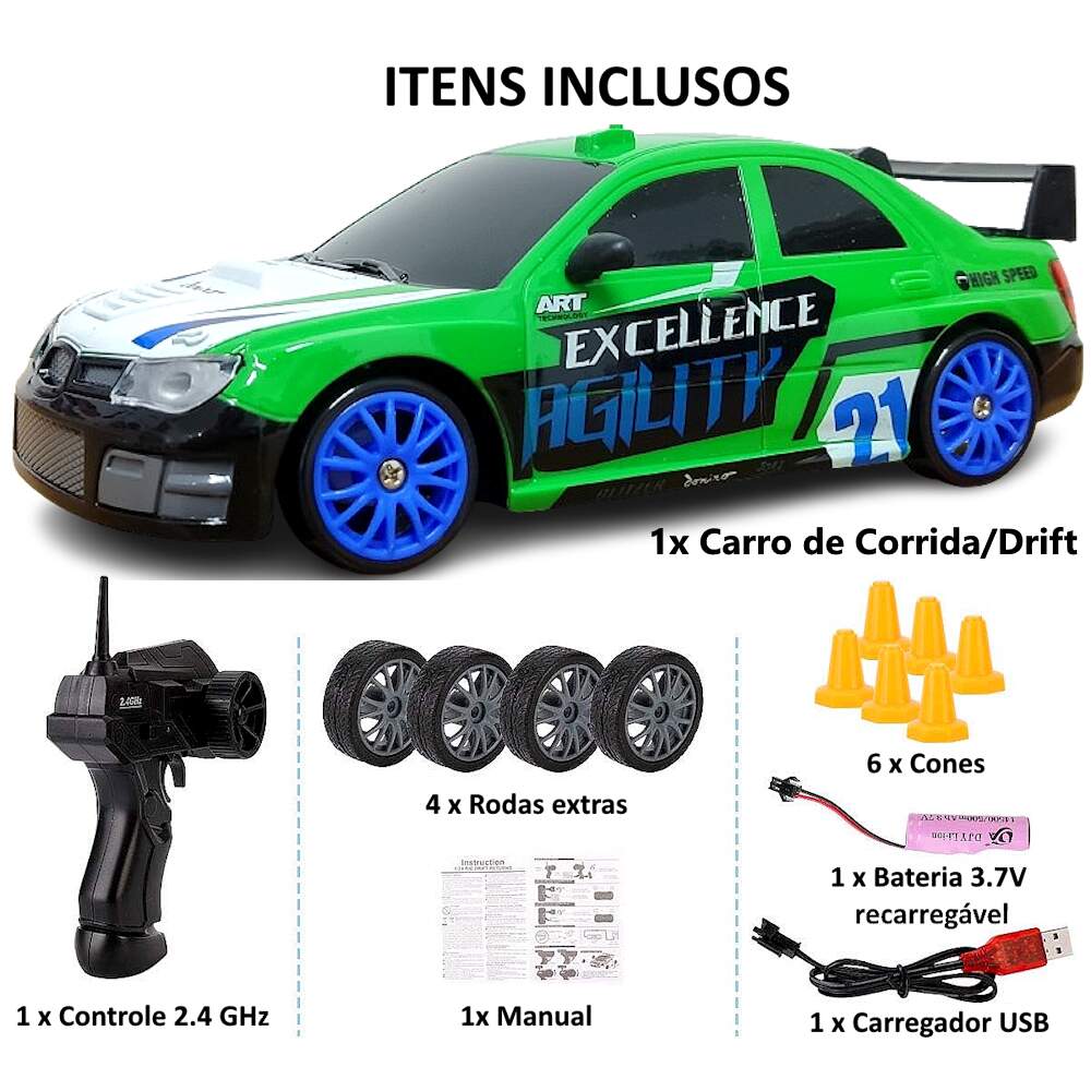 Carrinho de Controle Remoto Drift Super Carro de Corrida 4x4 4WD 2.4 GHz - Modelo Subaro Impreza