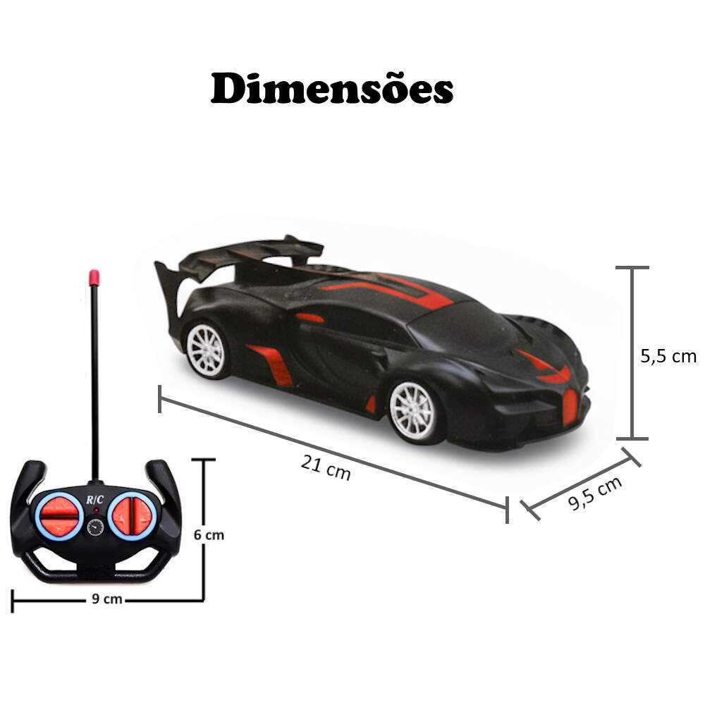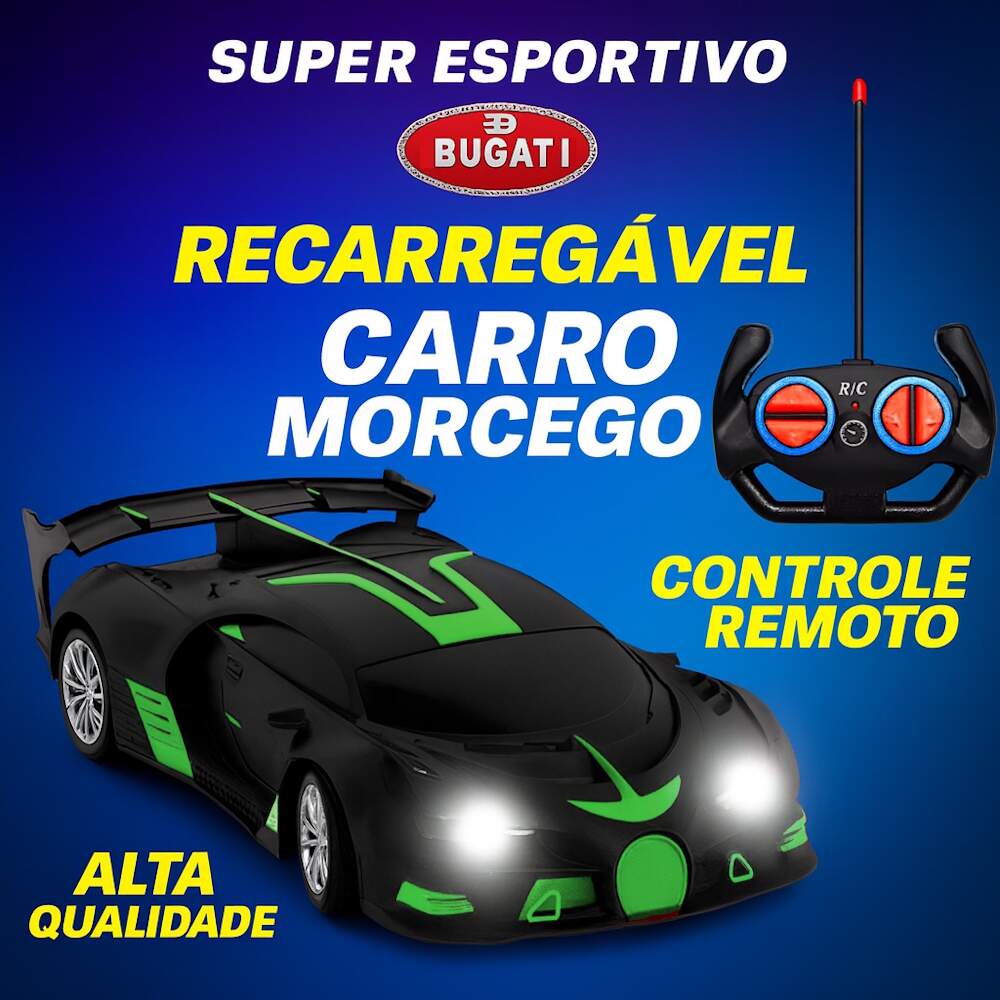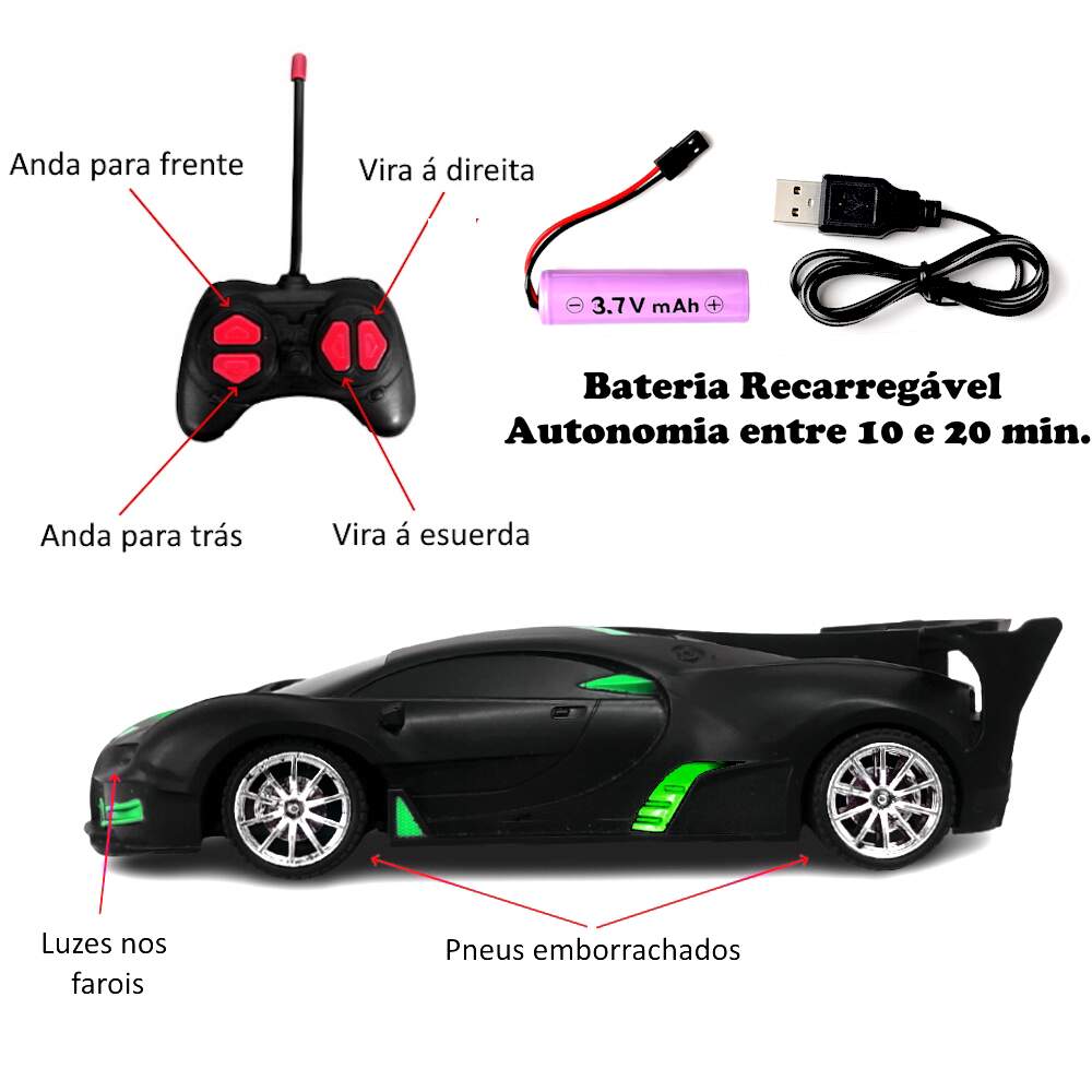 Carrinho de Controle Remoto Sem Fio Bugati Super Esportivo Preta com 6 Funções Recarregável Presente na Caixa