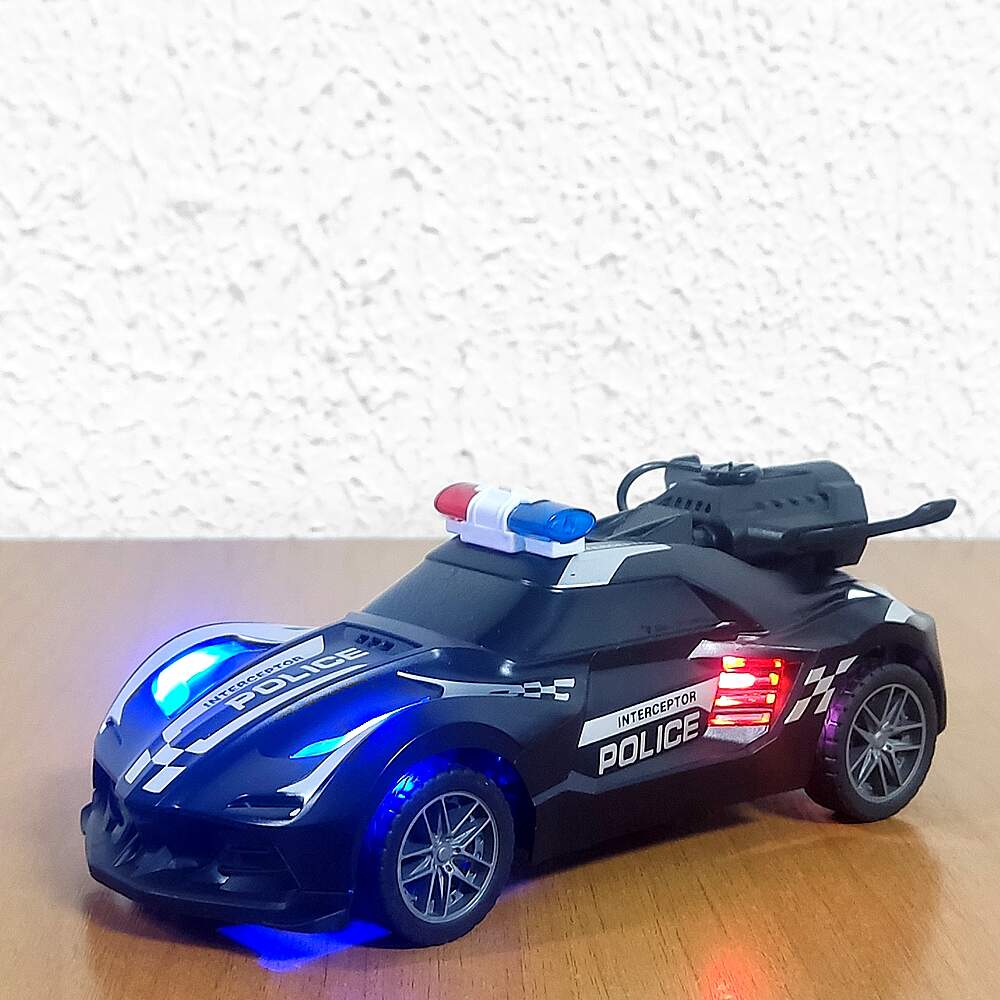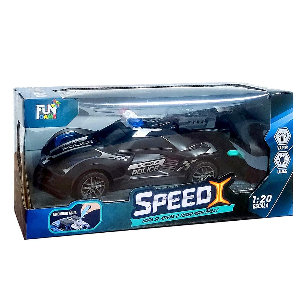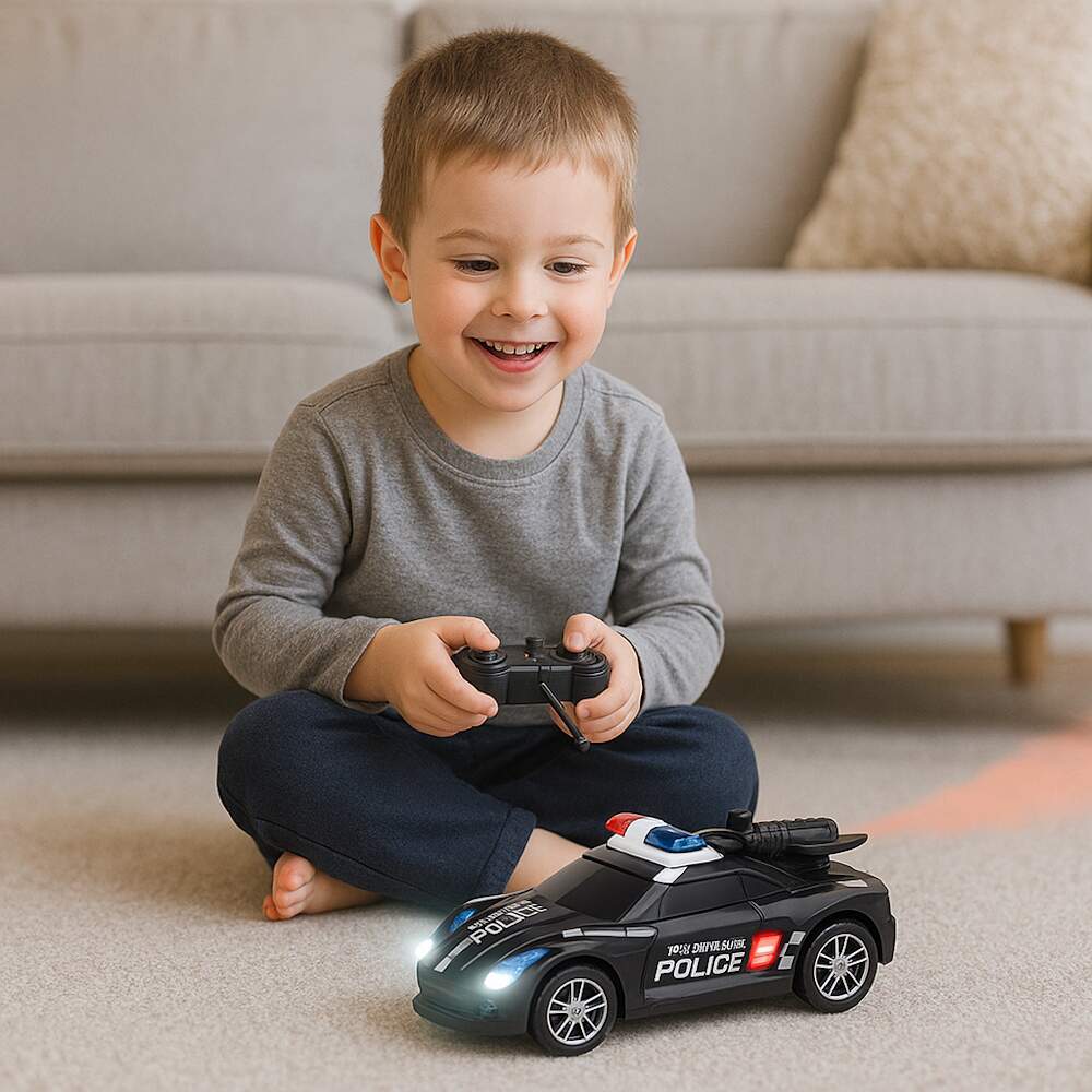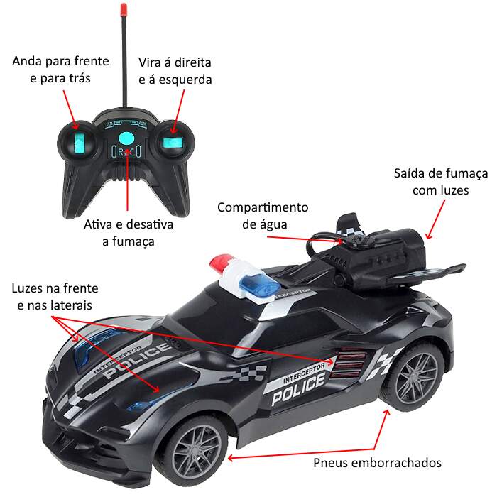 Carrinho de Controle Remoto Polícia que Solta Fumaça Com Luzes com Bateria Recarregável Preto