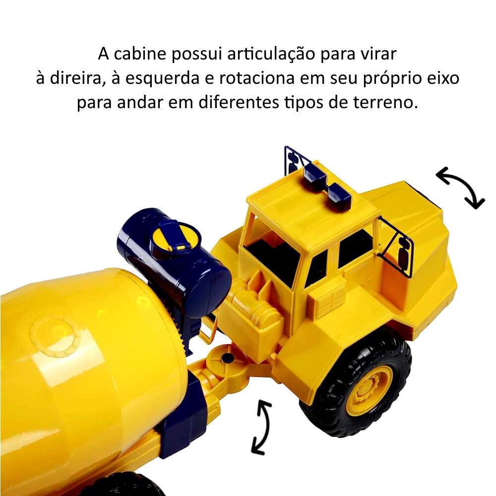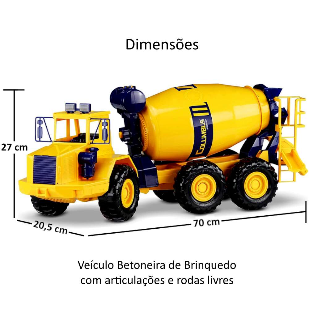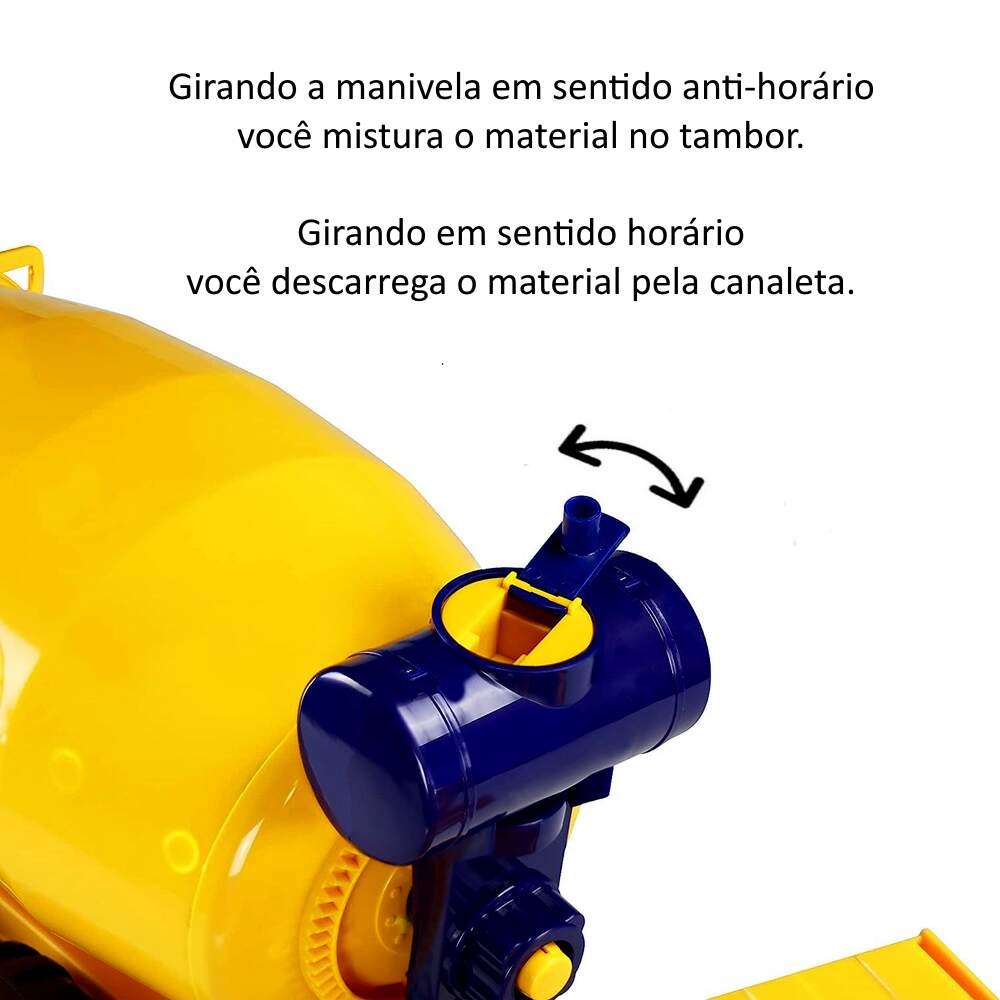 Carrinho de terra Caminhão Betoneira Columbus Gigante 70cm Carrinho de terra Caminhão Betoneira Columbus Gigante 70cm 0 avaliações | Dê a sua avaliação! Referência: RO450 Modelo/Marca: Caminhão Betoneira de Brinquedo Articulado Columbus/Roma Jensen R$ 155,39 ou 3x de R$ 54,19 sem juros ou em até 12x de R$ 16,54 no cartão Comprar Indicar este produto Deixar um comentário Boleto Bancário Parcelas 1x de R$ 162,57sem juros 2x de R$ 81,28sem juros 3x de R$ 54,19sem juros 4x de R$ 45,26 5x de R$ 37,17 6x de R$ 30,97 7x de R$ 27,11 8x de R$ 23,72 9x de R$ 21,62 10x de R$ 19,61 11x de R$ 17,83 12x de R$ 16,54 Caminhão Betoneira de Brinquedo de Construção Articulado ColumbusO super Caminhão Betoneira Columbus possui articulação frontal para a direita, para a esquerda e rotação em seu próprio eixo. Virando a manivela em sentido anti-horário, ela mistura o material e Virando no sentido horário, ela descarrega o material pela canaleta. As crianças vão adorar operar essa super máquina!Características:Marca: Roma BrinquedosReferência: 0450Idade Recomendada: A partir de 3 anosTamanho (aprox.) 70 x 22 x 27 cm (C x L x A)Composição (material): Polipropileno, PolietilenoFunções: Articulação, Rotação, Carregar, Misturar, Descarregar, Roda LivreCertificado INMETRO: Compulsório 000622/2021 - OCP 0006Conteúdo da Embalagem:1x Caminhão Betoneira Columbus