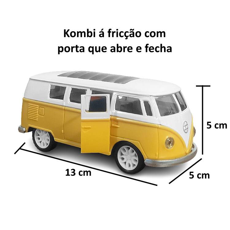 Carrinho em Miniatura Perua Kombi Amarela de Ferro Realista 1:32 Carrinho em Miniatura Perua Kombi Amarela de Ferro Realista 1:32 0 avaliações | Dê a sua avaliação! Referência: CP116977amarelo Modelo/Marca: Carrinho de Ferro Kombi de Metal Clássica/Barcelona R$ 28,32 ou 3x de R$ 9,88 sem juros ou em até 5x de R$ 6,77 no cartão Comprar Indicar este produto Deixar um comentário Boleto Bancário Parcelas 1x de R$ 29,63sem juros 2x de R$ 14,81sem juros 3x de R$ 9,88sem juros 4x de R$ 8,25 5x de R$ 6,77 Carrinho em Miniatura de Ferro Kombi Volksvagen Perua com Teto Solar à FricçãoEste carrinho de ferro é uma miniatura com detalhes de um carro de verdade. Possui abertura de portas, teto solar, pneus de borracha e funciona à fricção. É um item atraente para crianças e colecionadores adultos que adoram aumentar a bancada colecionável.Especificações:Fabricante: BarcelonaComposição: Fabricação com partes de Ferro e Plástico, Pneus de Borracha, Fricção e Abertura das PortasDimensões Aproximadas: 13cm de comprimento x 5cm Largura x 5cm AlturaIdade Recomendada: Á partir de 3 anosCERTIFICADO INMETRO: OCP0161 REGISTRO002601/2021Conteúdo do pacote:1x Veículo de Metal