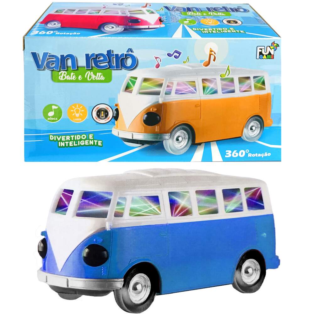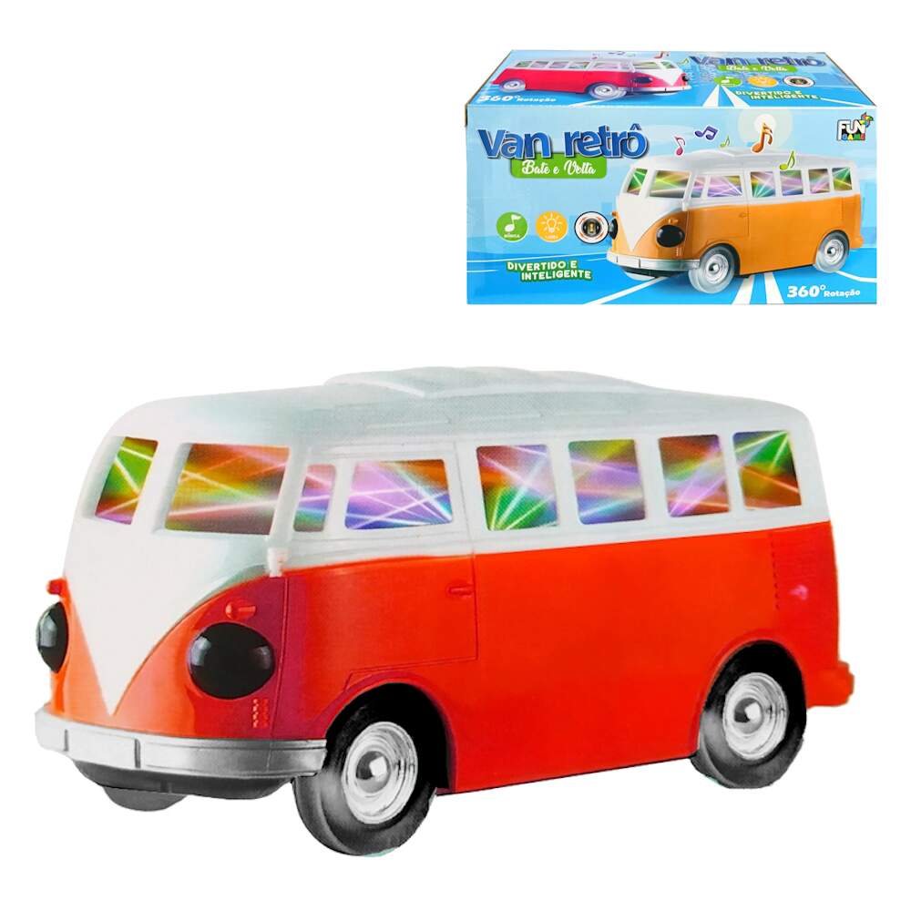Carrinho Perua Kombi com Som Bate e Volta e Gira 360º de Brinquedo Cores Sortidas