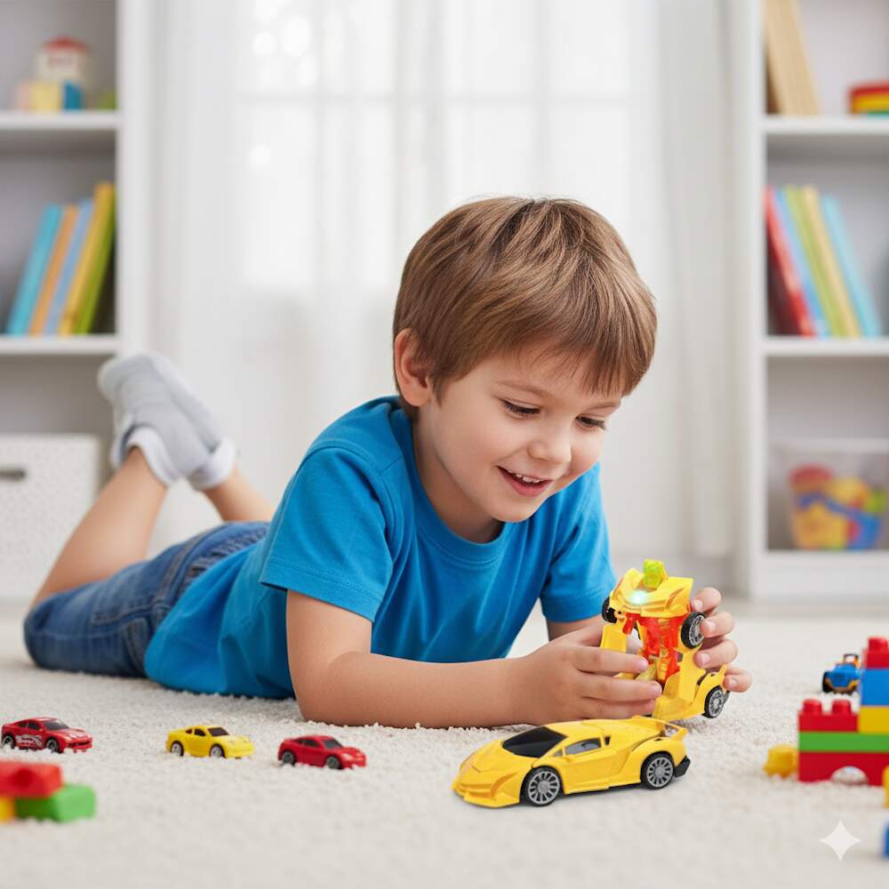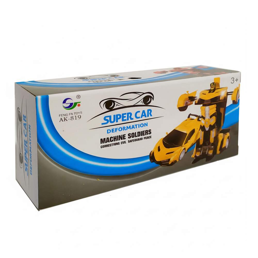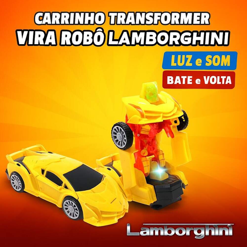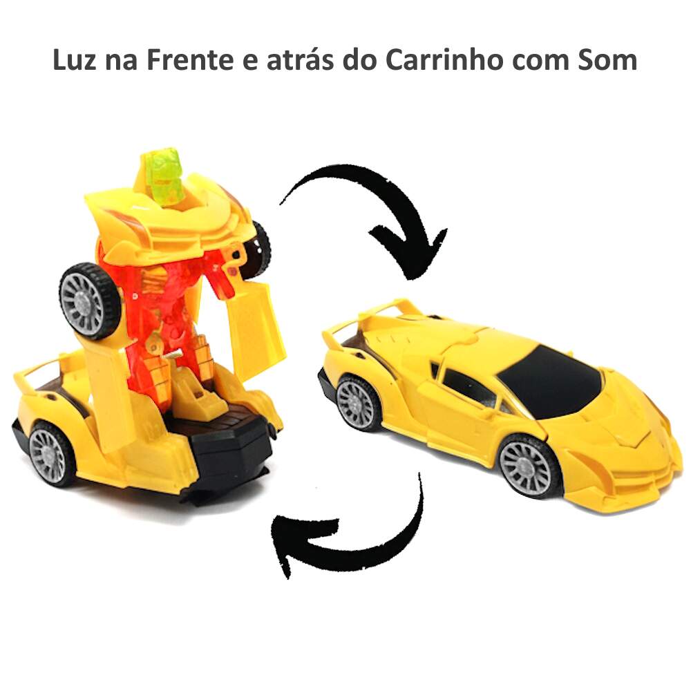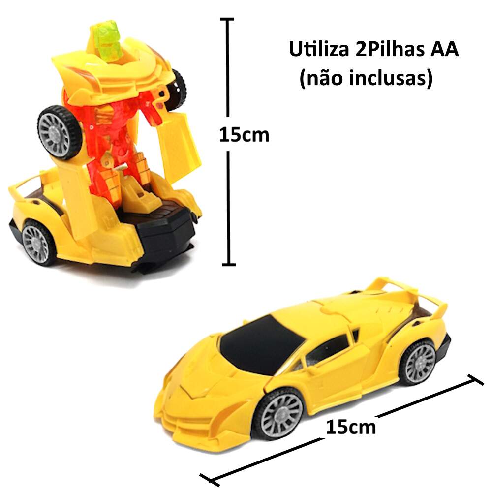 Carrinho Transformers Lamborghini Carro Vira Robô Amarelo Carrinho Transformers Lamborghini Carro Vira Robô Amarelo 0 avaliações | Dê a sua avaliação! Referência: GK1492AMARELO Modelo/Marca: Carrinho Transformers com Luzes e Sons/Goal Kids R$ 24,62 ou 3x de R$ 8,59 sem juros ou em até 5x de R$ 5,89 no cartão Comprar Indicar este produto Deixar um comentário Boleto Bancário Parcelas 1x de R$ 25,76sem juros 2x de R$ 12,88sem juros 3x de R$ 8,59sem juros 4x de R$ 7,17 5x de R$ 5,89 Carrinho Lamborghini transformers que vira Robô AmareloO clássico Camaro que vira robô agora em formato de Lamborghini de brinquedo para trazer o melhor dos filmes para a diversão da criançada, coloque as pilhas e aguarde o show, o carro se transforma em Robô, acende luzes coloridas e toca uma música divertida e tem o recurso de bater e desviar dos obstáculos.Recursos:- Acende luzes- Se Transforma - Robô Carro- Emite som- Bate e Volta- Gira em torno de seu eixo fazendo alguns movimentos ao se encontrar com obstáculos.Especificações:- Fabricante: Goal Kids- Modelo: GK1492- Não possui controle remoto não, brinquedo autônomo - Tamanho: 15cm de comprimento x 15cm Altura x 7cm Largura- Fonte de alimentação: 2 pilhas AA (NÃO INCLUSAS).- Ideal para crianças a partir de 3 anos- Certificado INMETRO CE-BRI/BRICS 00298-16 NM 300/2002Itens Inclusos:1 x Carrinho Transformer
