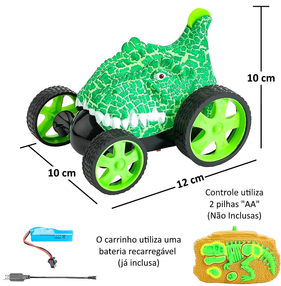 Carro Maluco Dino Gira 360º Recarregável de Controle com Luz Carro Maluco Dino Gira 360º Recarregável de Controle com Luz 0 avaliações | Dê a sua avaliação! Referência: CP168812 Modelo/Marca: Carro Maluco Dinossauro de Controle Manobras Radicais Infantil com Som e Luz/Barcelona R$ 65,56 ou 3x de R$ 22,86 sem juros ou em até 12x de R$ 6,98 no cartão Comprar Indicar este produto Deixar um comentário Boleto Bancário Parcelas 1x de R$ 68,59sem juros 2x de R$ 34,29sem juros 3x de R$ 22,86sem juros 4x de R$ 19,10 5x de R$ 15,68 6x de R$ 13,07 7x de R$ 11,44 8x de R$ 10,01 9x de R$ 9,12 10x de R$ 8,28 11x de R$ 7,52 12x de R$ 6,98 Carro Maluco Dinossauro de Controle Manobras Radicais Infantil com Luz RecarregávelO carrinho maluco faz manobras espetaculares, girando suas rodas em 360º, não há limites ou barreiras para este carro de controle, ele literalmente ?passa o carro? em qualquer obstáculo principalmente por sua forma icônica de fazer as curvas. Fácil de comandar pelo controle remoto sem fio, é perfeito para as crianças, meninos ou meninas e até mesmo os adultos brincarem juntos. Construído com materiais de alta qualidade, este brinquedo é uma aposta resistente aos eventuais choques durante as brincadeiras, além de tudo isso conta com iluminação colorida na cabine, tornando-o incrível em ambientes claros e principalmente escuros. O carro é Leve e conta com rodas enormes para permitir que ele seja utilizado no piso, tapete, terra, etc., já vem pronto para a brincadeira, é só colocar as pilhas e partir para diversão.Especificações:Material: Plástico com rodas de BorrachaTipo de Carro: Controle Remoto Sem FioDimensões A x C x L: 10x 12 x 10 cmAlimentação Carro: 1 bateria recarregável (Inclusa)Controle remoto: Utiliza 2 Pilhas AA (Não Inclusas)Selo Inmetro: Compulsório 002706/2021Certificado Anatel: 04095-23-14059Idade mínima: 3 anos Itens Inclusos: 1 x Carro Maluco 3601 x Controle Remoto sem fio