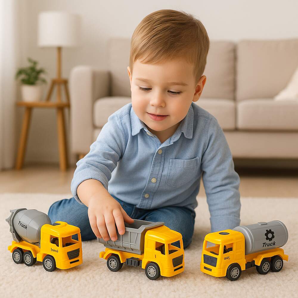 - Tamanho Ideal para Crianças: Cada caminhão tem aproximadamente 11cm, fácil de manusear e perfeito para mãos pequenas.