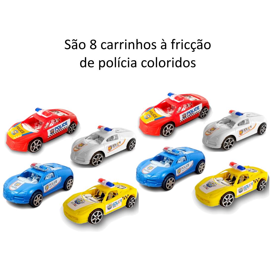 Coleção de 8 Carrinhos de Polícia a Fricção Infantil Coleção de 8 Carrinhos de Polícia a Fricção Infantil 0 avaliações | Dê a sua avaliação! Referência: TK1007kit2 Modelo/Marca: Kit com 8 Carrinhos Coloridos de Polícia de Fricção/Barcelona R$ 36,33 ou 3x de R$ 12,67 sem juros ou em até 7x de R$ 6,34 no cartão Comprar Indicar este produto Deixar um comentário Boleto Bancário Parcelas 1x de R$ 38,01sem juros 2x de R$ 19,00sem juros 3x de R$ 12,67sem juros 4x de R$ 10,58 5x de R$ 8,69 6x de R$ 7,24 7x de R$ 6,34 Conjunto com 8 Carrinhos de Polícia de Fricção na Caixa InfantilEste é um lindo Kit de Carrinhos de Fricção modelo de Polícia, são 4 carrinhos de polícia em miniatura na caixinha, as crianças vão soltar a imaginação e vão brincar muito.Especificações:Tipo de Carrinho: Fricção de PolíciaMaterial: Polímeros plásticosDimensões: 9cm de comprimentoFabricante: BarcelonaIdade mínima: 3 anosCertificado INMETRO CE BRI/innac 02316-03A NM 300/2002Itens Inclusos:8 x Carrinhos de Fricção