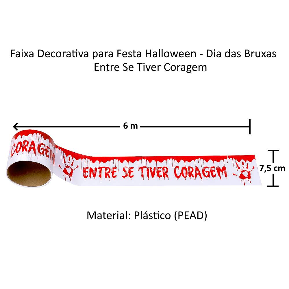 Decore sua festa de Halloween com essa faixa assustadoramente divertida! A faixa "Entre Se Tiver Coragem" é feita com materiais de alta qualidade e possui um design exclusivo, perfeita para criar um clima de terror e mistério. Com 6 metros de comprimento, ela é ideal para decorar qualquer ambiente interno ou externo. É o toque final que faltava para sua festa ser inesquecível!