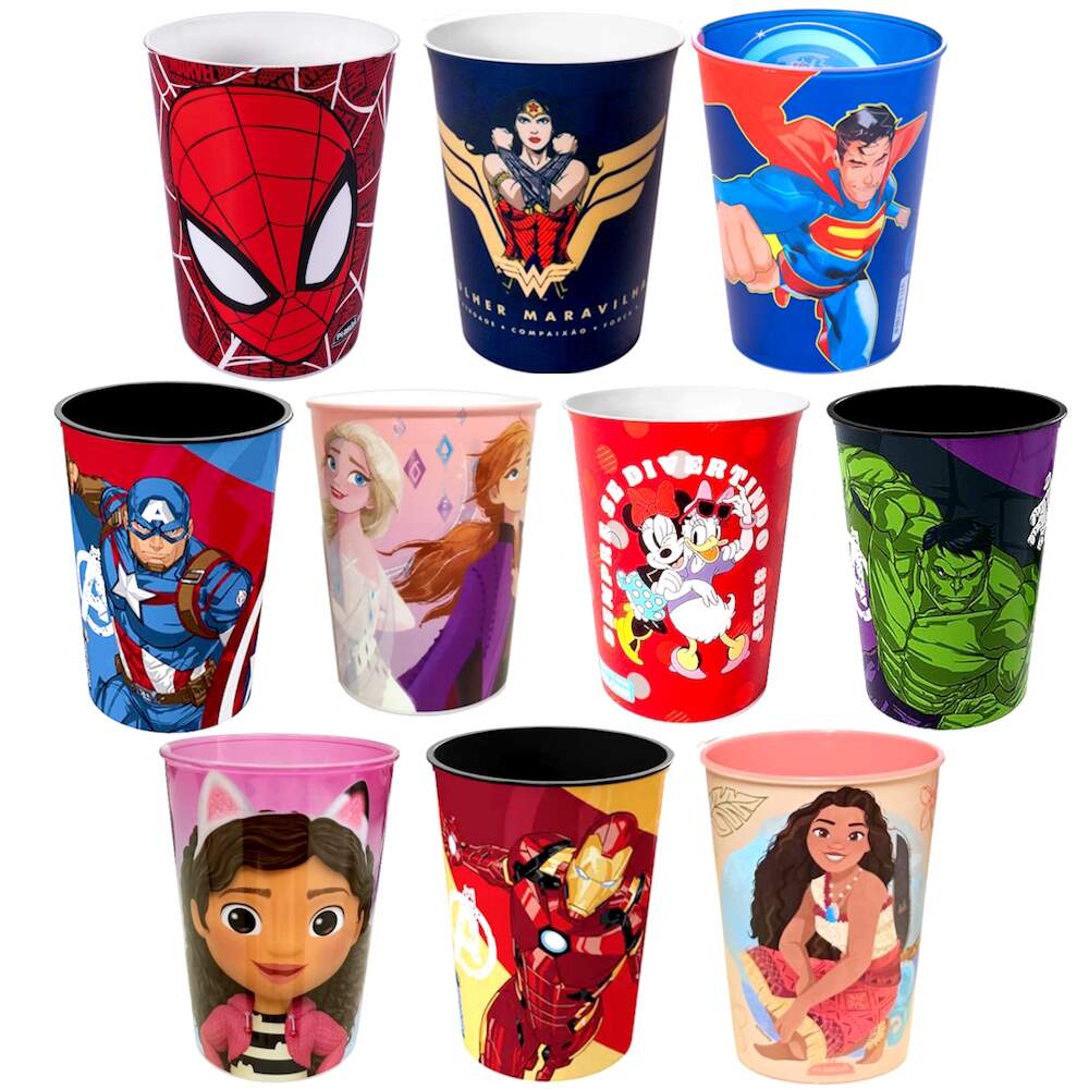 Copo de Personagens e Super Heróis para Base de Ovo de Páscoa e kit para Festa Infantil e p/ Sacolinha Surpresa - 10 Unidades