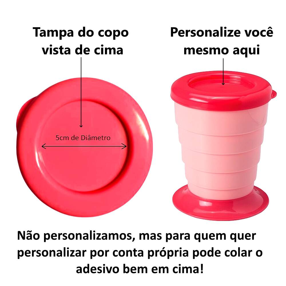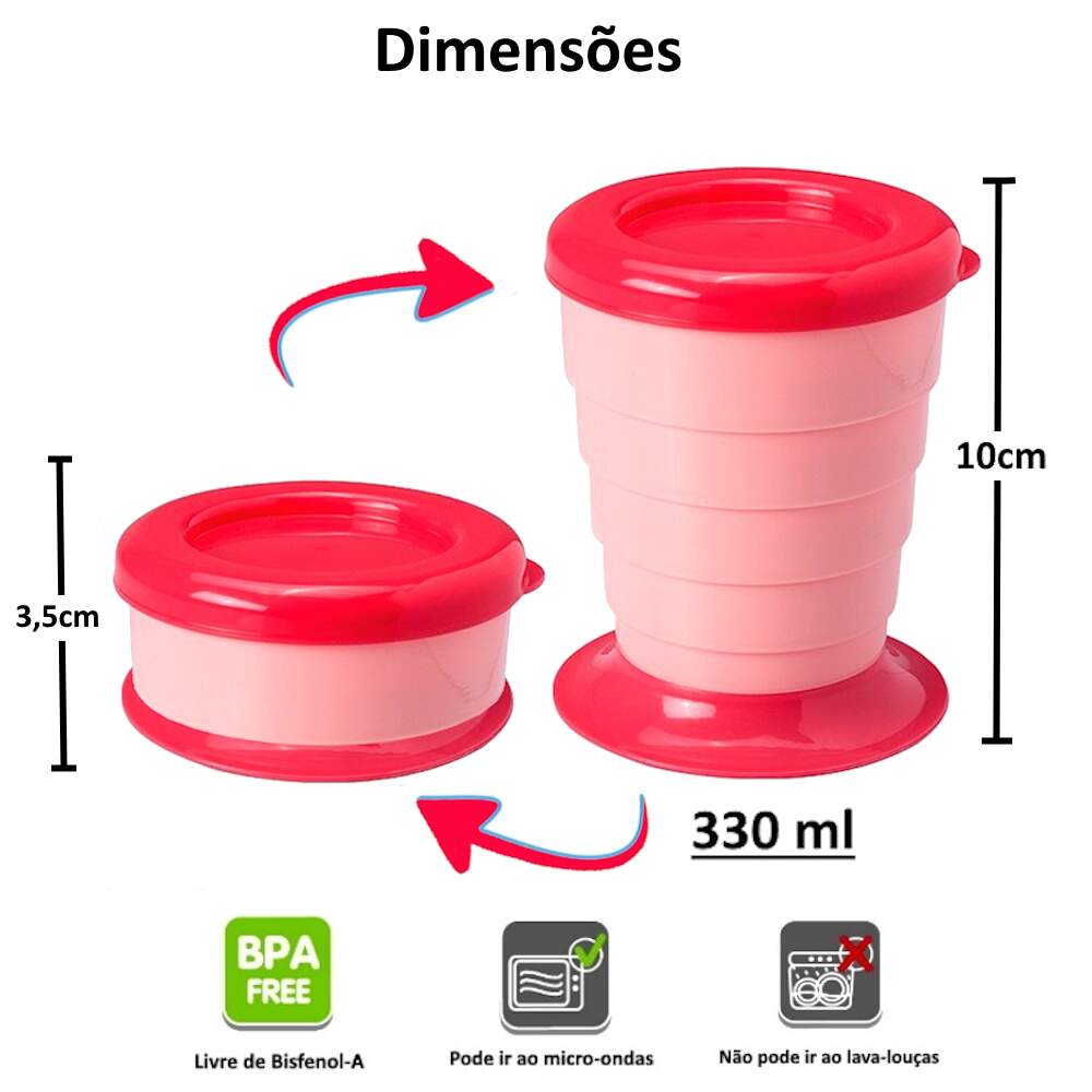 Copo Retrátil de Plástico Com Tampa 330ml Rosa para Crianças Levar na Bolsa
