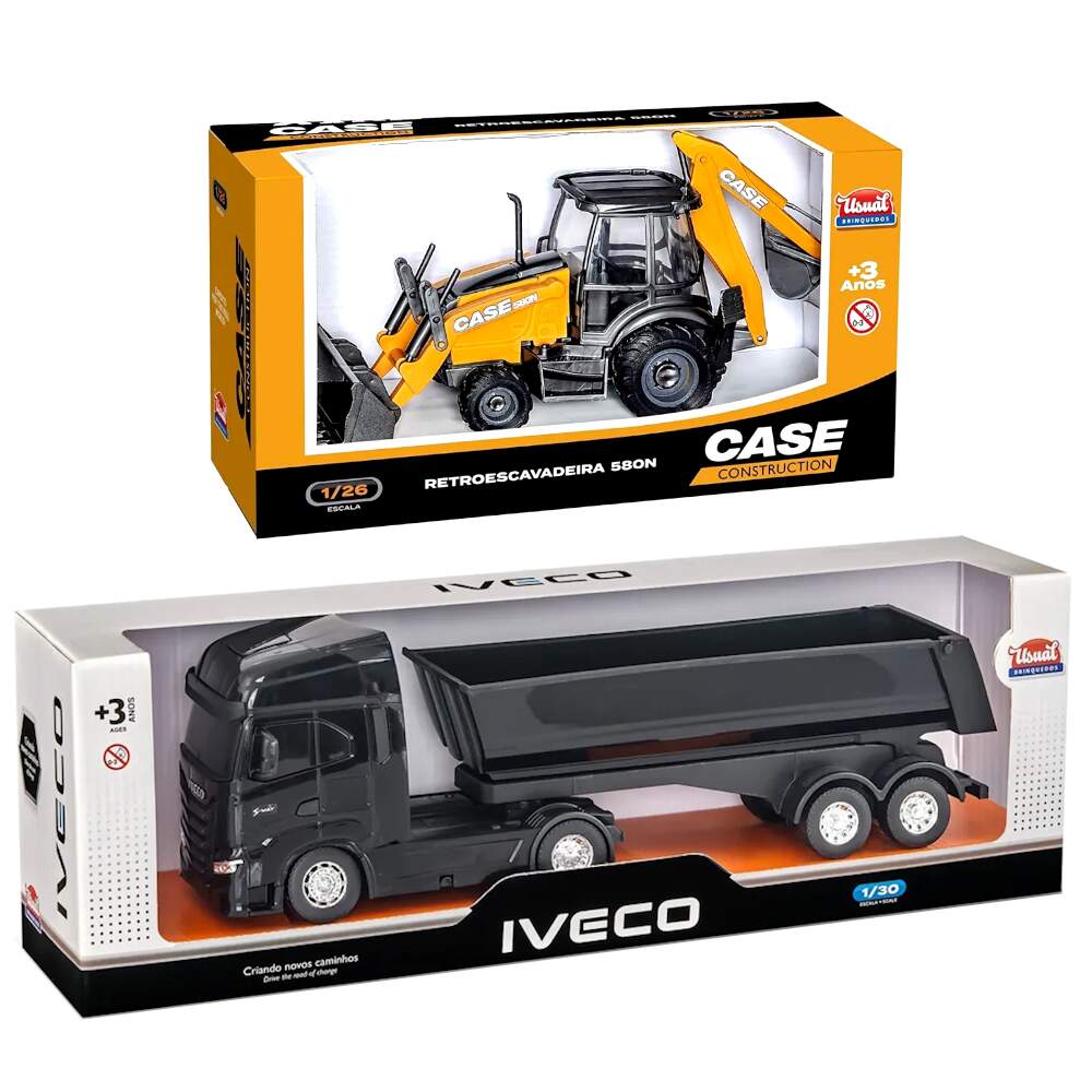 Caminhão de Brinquedo Iveco Hi-Way Basculante e Trator Retroescavadeira