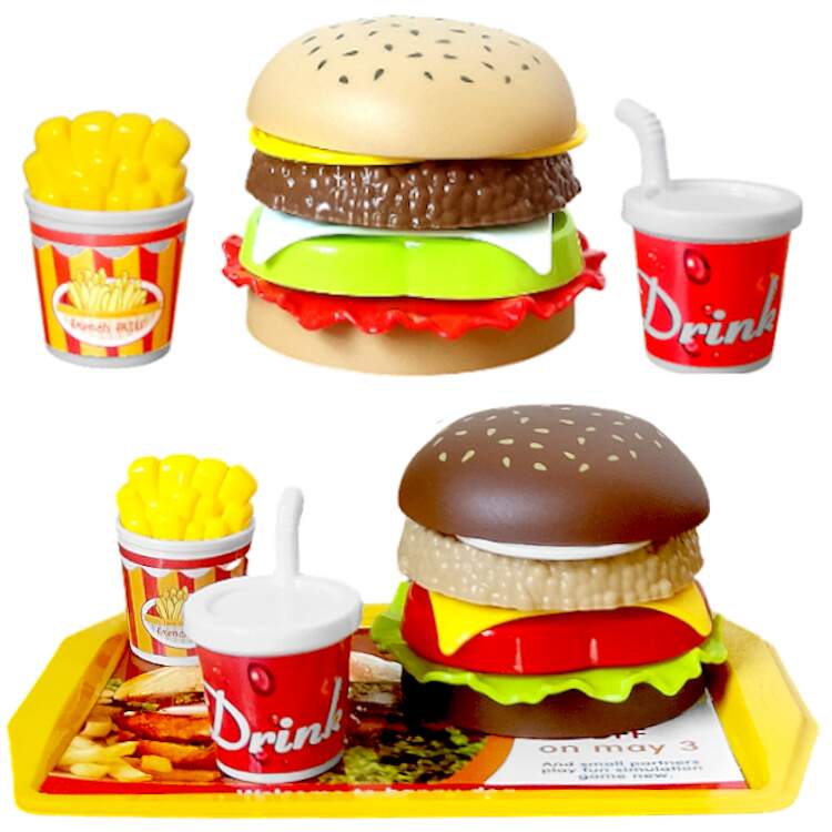 Kit 2 Lanches de Brinquedo Batata Refri Hambúrguer Bandeja Kit 2 Lanches de Brinquedo Batata Refri Hambúrguer Bandeja 0 avaliações | Dê a sua avaliação! Referência: TKAB4754kit2 Modelo/Marca: Kit Lanche Fast Food de Brinquedo Combo com Hambúrguer Batata Frita e Refrigerante/Toy King R$ 54,08 ou 3x de R$ 18,86 sem juros ou em até 11x de R$ 6,21 no cartão Comprar Indicar este produto Deixar um comentário Boleto Bancário Parcelas 1x de R$ 56,58sem juros 2x de R$ 28,29sem juros 3x de R$ 18,86sem juros 4x de R$ 15,75 5x de R$ 12,93 6x de R$ 10,78 7x de R$ 9,43 8x de R$ 8,26 9x de R$ 7,52 10x de R$ 6,83 11x de R$ 6,21 Kit Lanche Fast Food de Brinquedo Combo com 2 Hambúrgueres, 2 Batatas Frita e 2 RefrigerantesO Combo Fast Food de Brinquedo é a opção perfeita para quem quer brincar de fast food sem sair de casa. Com ele, você pode montar seu próprio lanche e se divertir com os amigos.O kit inclui um lanche de hambúrguer, uma bandeja, uma batata frita e um refrigerante de brinquedo. São feitos de plástico e têm um design realista. Você pode montar e desmontar o lanche de hambúrguer e recortar os cupons de desconto na caixa para a brincadeira ficar ainda mais divertida.Atenção: Possui duas cores do Pão do lanche de hambúrguer. Enviamos conforme disponibilidade do estoque.Características: O Lanche Desmonta para retirar ou colocar os ingredientes, a Batatinha solta do pacote mas em peça única e o Copo de Refrigerante solta a tampa e pode colocar liquidos dentro.Especificações::Marca: Toy KingReferência: TK-AB4754Brinquedo: Kit Lanche na caixa com Lanche DesmontávelTamanho: Dimensões nas FotosIdade Recomendada: A partir de 3 anosComposição (material): PlásticoCertificado INMETRO: Compulsório 02316-01AConteúdo da Embalagem:2x Lanche de Hambúrguer2x Batata Frita2x Refrigerante2x Bandeja16x Cupom de Desconto (de brinquedo)