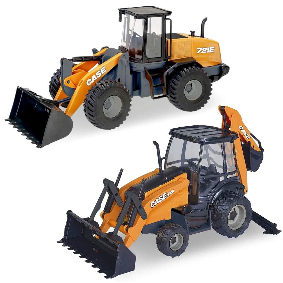 Kit Trator Brinquedo Retroescavadeira 580n Case e Pá Carregadeira 721e