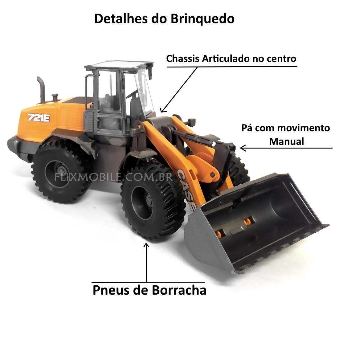 O trator que você vê no campo, virou uma miniatura realista para brincar. O Trator Retroescavadeira e a Pá carregadeira Case são novidades que a Usual Brinquedos traz para o mercado brasileiro. Esse brinquedo vai fazer muito sucesso entre a garotada, transforme a brincadeira com esse trator igualzinho ao de verdade. É um excelente brinquedo para o desenvolvimento criativo das crianças, alimentando sua imaginação e, é lógico, uma diversão garantida. E também um ótimo produto para colecionadores.