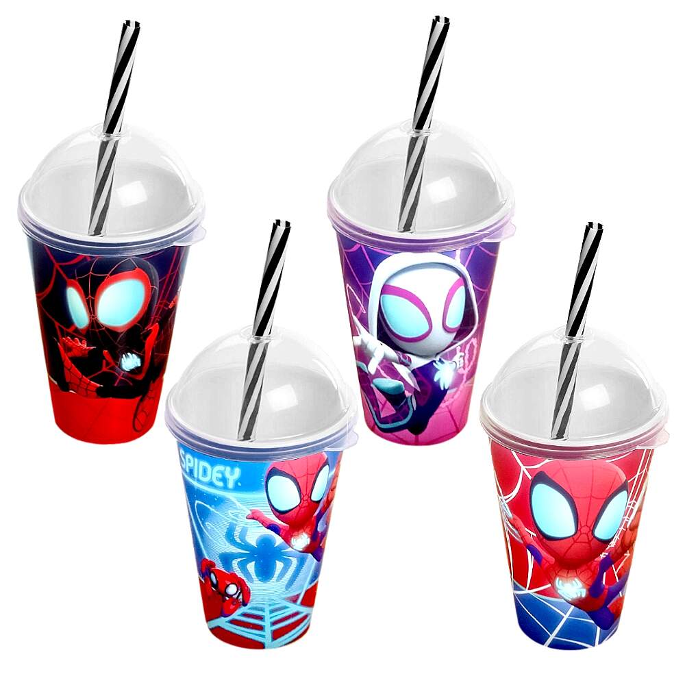 Copo de alta qualidade da Plasútil Spidey 280ml com Tampa e Canudo Livre de BPA Estampa Sortida para Festa Infantil Aniversário Doces Decoração Estampas Variadas