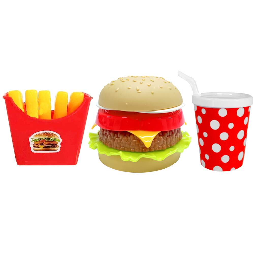 Kit Especial Hambúrguer de Brinquedo de Montar de Desmontar Combo Lanche MC com Refrigerante e Batatinha