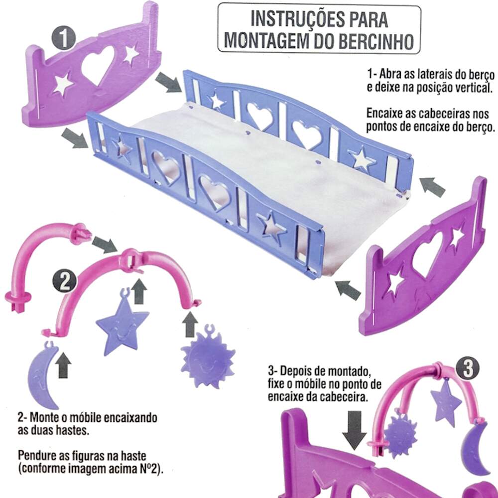 O Bercinho Balança com Boneca Bebê é um kit completo que garante muita diversão e faz de conta! Acompanha uma boneca bebê que faz xixi, além de chupeta, mamadeira e fraldinha, permitindo que a criança simule os cuidados com um bebê de verdade. O bercinho com função de balanço ajuda a embalar a boneca para dormir, tornando a brincadeira ainda mais realista e carinhosa. Ideal para estimular a imaginação, o afeto e o cuidado nas brincadeiras do dia a dia.