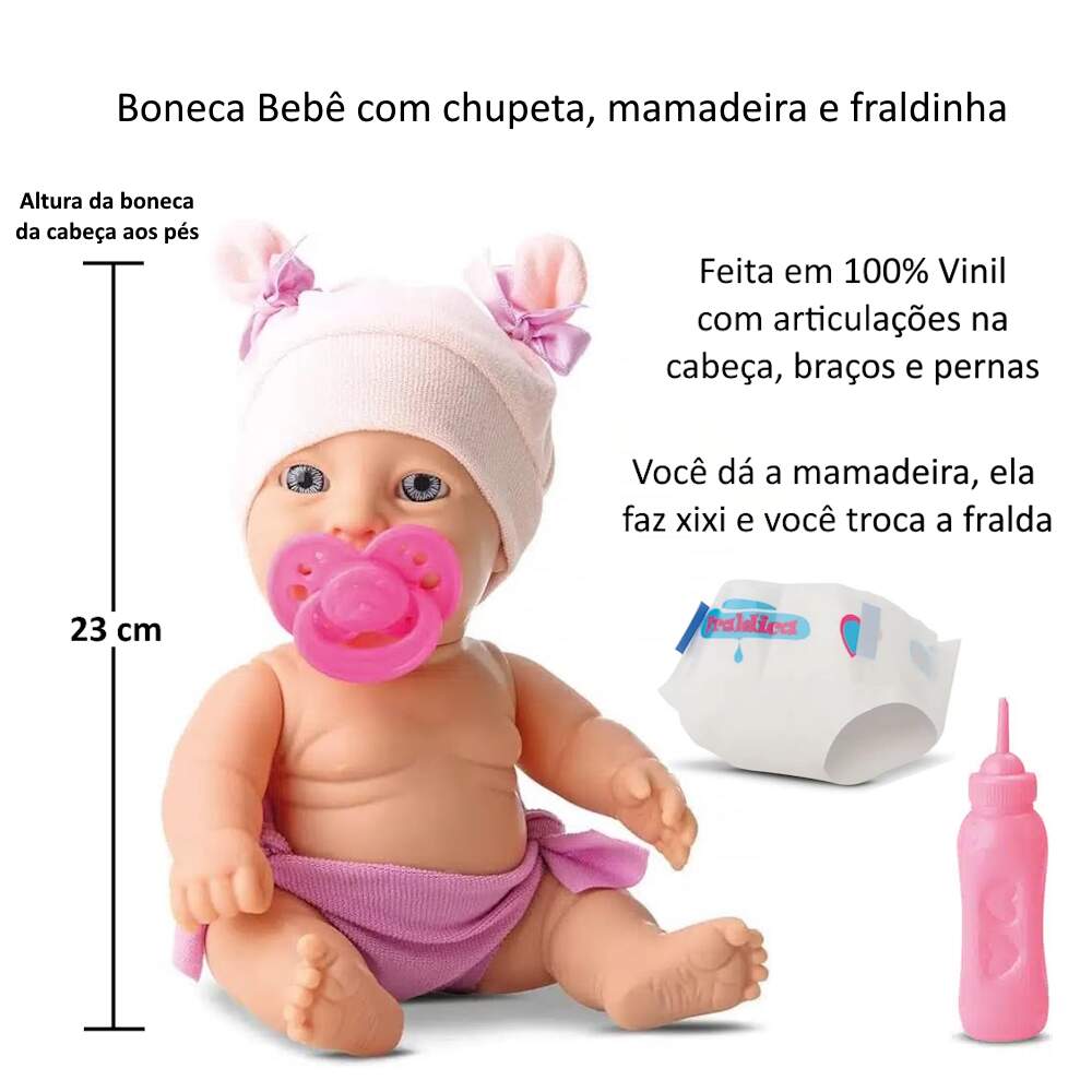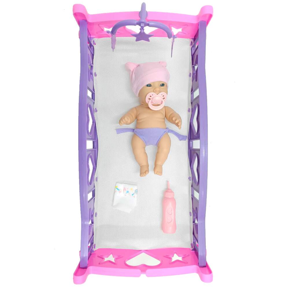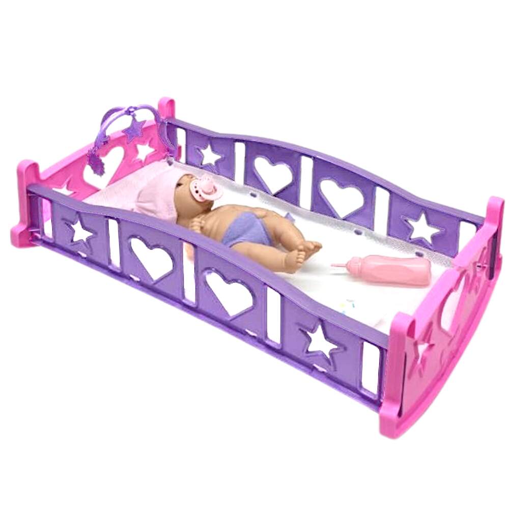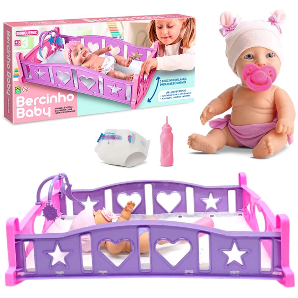 Bercinho Balança para o Bebê Dormir com Boneca Bebê Faz Xixi com Chupeta Mamadeira e Fraldinha