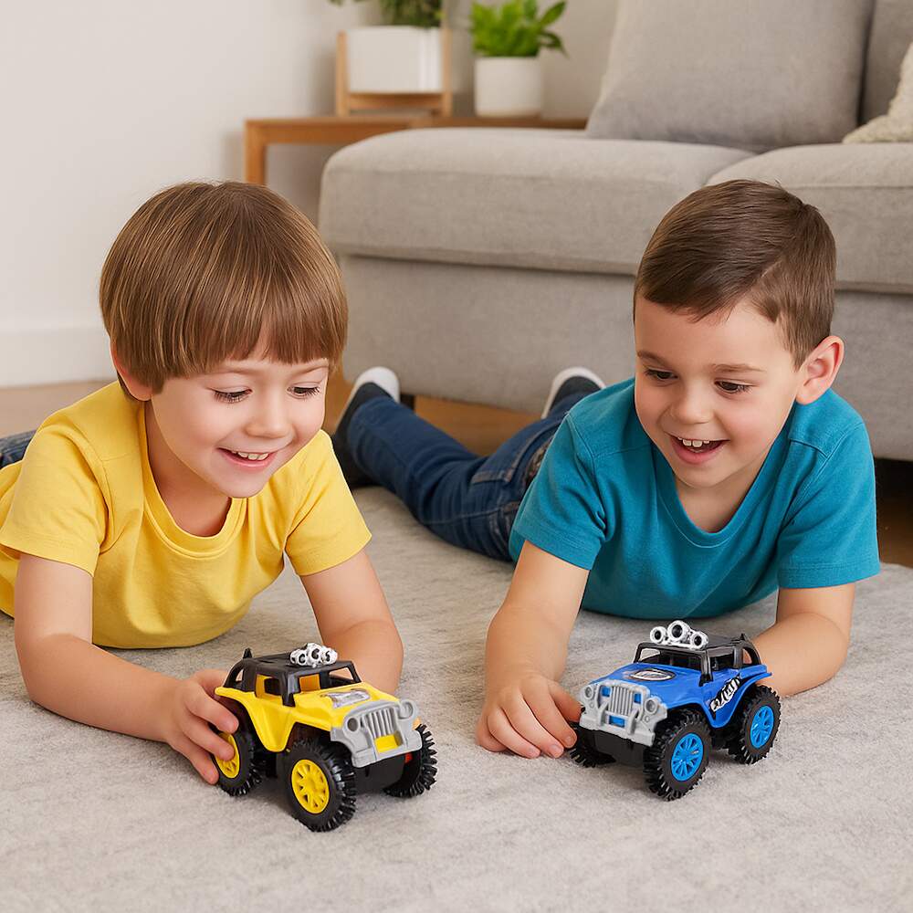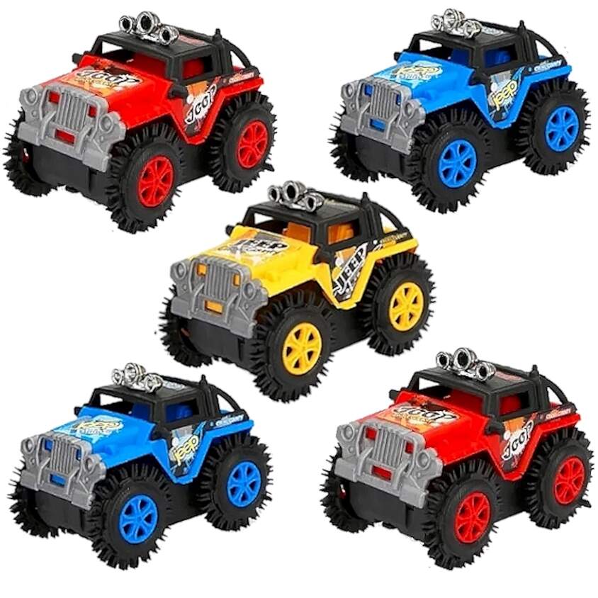 Kit 5 Jeeps Cambalhota Infantil a Pilha 4x4 Sobe na Parede Kit 5 Jeeps Cambalhota Infantil a Pilha 4x4 Sobe na Parede 0 avaliações | Dê a sua avaliação! Referência: CP143274kit5 Modelo/Marca: Carrinho a pilha Jipinho Bate e Volta Cambalhota/Fun Game R$ 66,53 ou 3x de R$ 23,20 sem juros ou em até 12x de R$ 7,08 no cartão Comprar Indicar este produto Deixar um comentário Boleto Bancário Parcelas 1x de R$ 69,60sem juros 2x de R$ 34,80sem juros 3x de R$ 23,20sem juros 4x de R$ 19,38 5x de R$ 15,91 6x de R$ 13,26 7x de R$ 11,61 8x de R$ 10,16 9x de R$ 9,26 10x de R$ 8,40 11x de R$ 7,63 12x de R$ 7,08 Coleção de Carrinhos a pilha Jeep 4x4 Sobe Parede Vira Cambalhota Bate e Volta - 5 UnidadesO Clássico Jeep Maculo 4x4 está na área, um brinquedo divertido onde os obstáculos não existem, as paredes não o impedem de seguir sua jornada maluca de destino desconhecido. O Carrinho Bate e Volta tem tração nas 4 rodas, sobe rampas e se encontrar uma parede ele escala até virar e dar uma cambalhota seguindo em outra direção.Especificações:Pneus de BorrachaUtiliza 2x pilhas AA (não inclusas)Tração nas 4 Rodas e dá CambalhotasDimensões: 10,5cm de comprimento x 7,5cm Largura x 8cm AlturaIdade Recomendada: Á partir de 3 anosCERTIFICADO INMETRO: 002598/2021Enviado em cores sortidas, conforme disponibilidade na lojaConteúdo do pacote:5x Carrinho a pilha