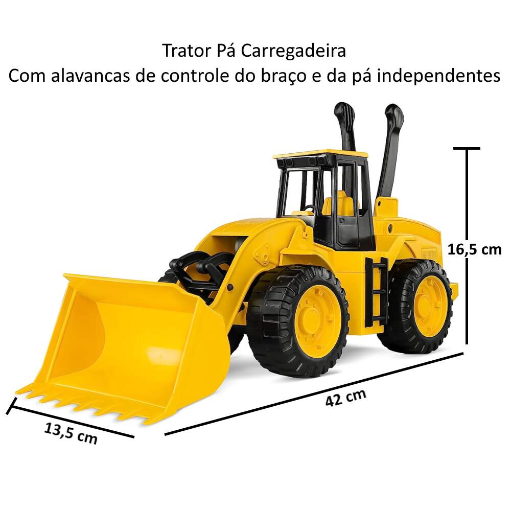 Kit Caminhão Areia e Trator Pá Carregadeira e 2 Capacetes 0 avaliações | Dê a sua avaliação! Referência: RO1520eXIS0492eXIS0492azul Modelo/Marca: Trator Pá Carregadeira com Caminhão de Brinquedo Articulado Brutale Construction Com Capacetes/Roma Jensen R$ 124,51 ou 3x de R$ 43,42 sem juros ou em até 12x de R$ 13,26 no cartão Comprar Indicar este produto Deixar um comentário Boleto Bancário Parcelas 1x de R$ 130,26sem juros 2x de R$ 65,13sem juros 3x de R$ 43,42sem juros 4x de R$ 36,27 5x de R$ 29,78 6x de R$ 24,82 7x de R$ 21,72 8x de R$ 19,01 9x de R$ 17,32 10x de R$ 15,72 11x de R$ 14,29 12x de R$ 13,26 Trator Pá Carregadeira com Caminhão de Areia Basculante de Brinquedo Articulado Brutale Construction Com CapacetesA linha Brutale está agora com a versão Construction, uma super máquina carregadeira e um super caminhão basculante! O caminhão possui caçamba inclinável com porta traseira que se abre. O trator possui comandos para levantar e movimentar a pá da carregadeira. Disponível também em outras versões. Uma linha perfeita para brincar, se divertir muito e colecionar!Características:Marca: Roma BrinquedosCódigo Referência: 1520Idade Recomendada: A partir de 5 anosTamanho (trator): 42 x 13,5 x 16,5 cm (CxLxA)Tamanho (caminhão): 30 x 12 x 13,5 cm (CxLxA)Material: PolipropilenoCertificado INMETRO: 000170/2021 - OCP 0006Conteúdo do Pacote:1x Trator Carregadeira1x Caminhão Basculante1x Pá1x Capacete Azul1x Capacete Amarelo
