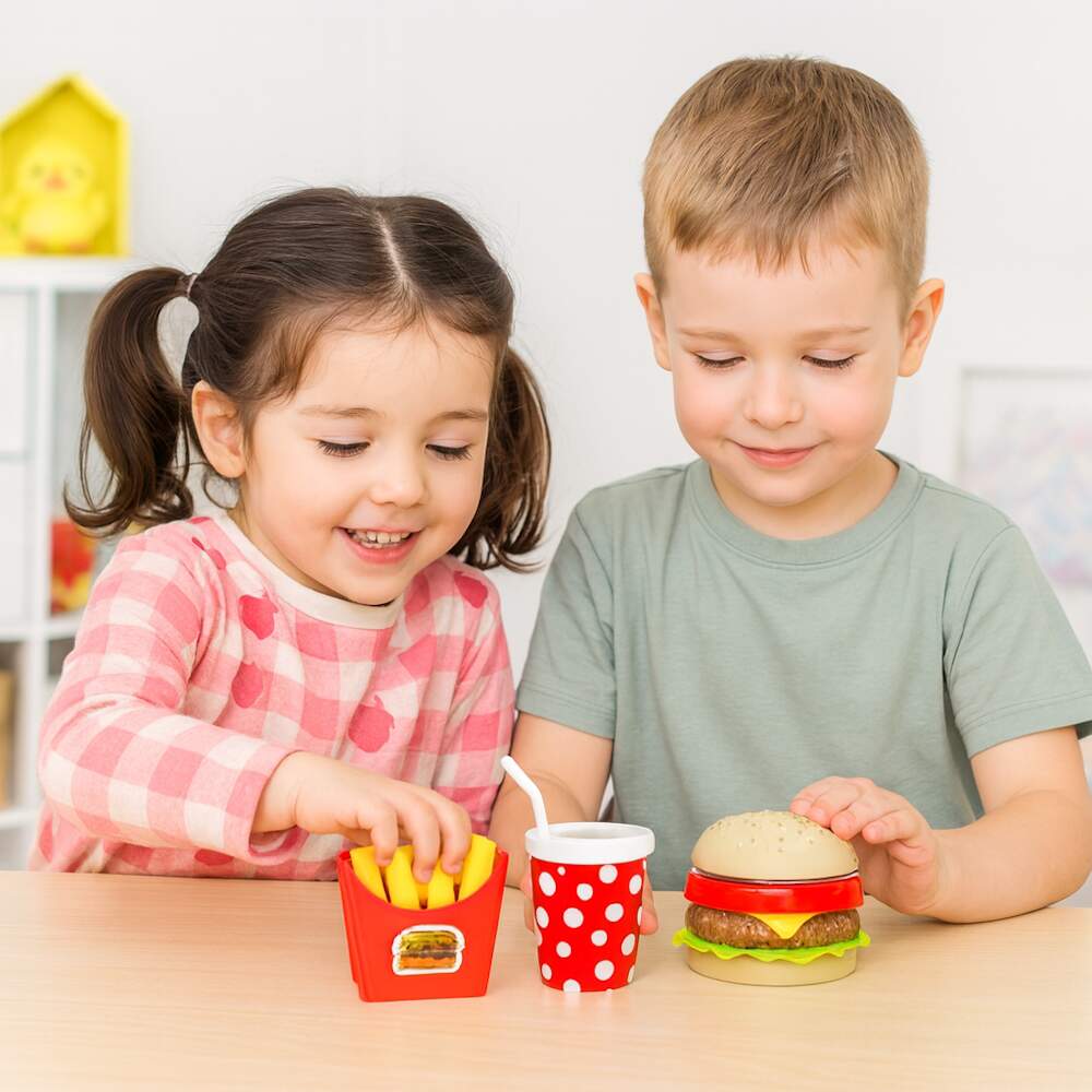 Kit Especial Hambúrguer de Brinquedo de Montar de Desmontar Combo Lanche MC com Refrigerante e Batatinha