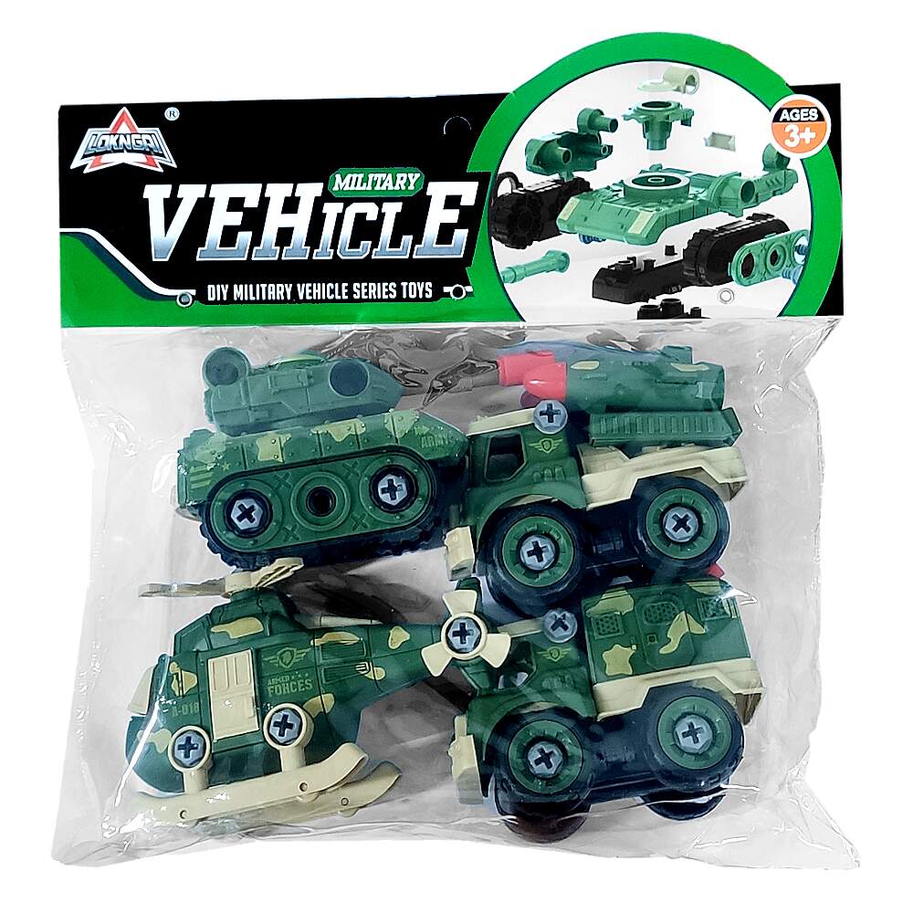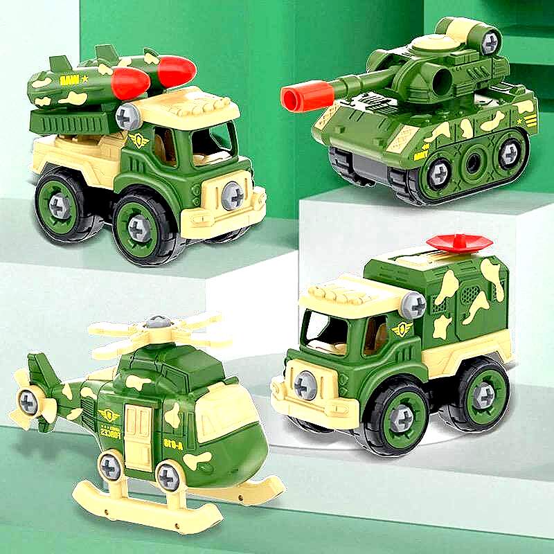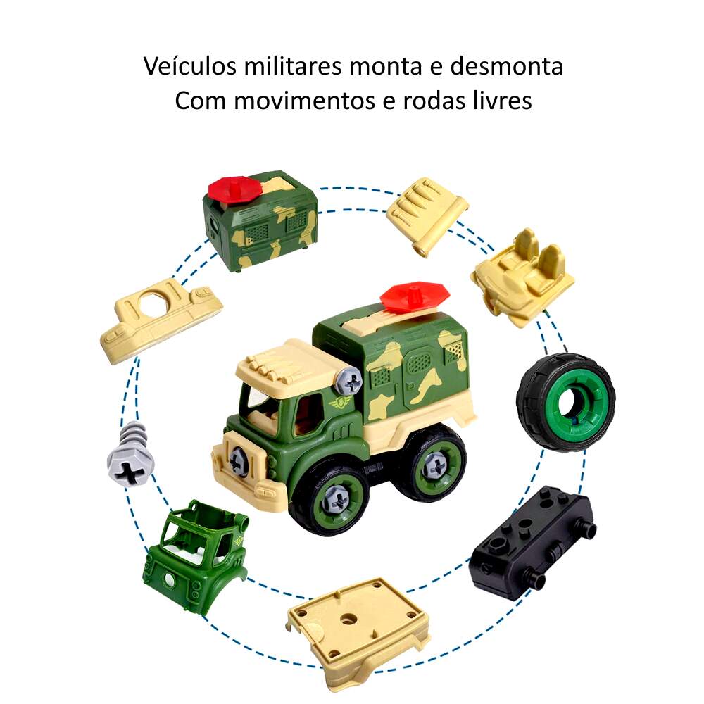 Kit com 4 Carrinhos e Veículos Militares de Montar Educativo Kit com 4 Carrinhos e Veículos Militares de Montar Educativo 0 avaliações | Dê a sua avaliação! Referência: CP175143 Modelo/Marca: Conjunto de Veículos Militar Monta e Desmonta Caminhãozinho/Barcelona R$ 51,64 ou 3x de R$ 18,01 sem juros ou em até 10x de R$ 6,52 no cartão Comprar Indicar este produto Deixar um comentário Boleto Bancário Parcelas 1x de R$ 54,03sem juros 2x de R$ 27,01sem juros 3x de R$ 18,01sem juros 4x de R$ 15,04 5x de R$ 12,35 6x de R$ 10,29 7x de R$ 9,01 8x de R$ 7,88 9x de R$ 7,18 10x de R$ 6,52 Conjunto de Veículos Militar Monta e Desmonta 2 Caminhões 1 Tanque de Guerra e 1 HelicópteroAs crianças vão amar este brinquedo de montar. Além de ser um ótimo entretenimento, ajuda no desenvolvimento da coordenação motora e estimula a resolução de lógica nas crianças. Conta com 4 modelos de veículos de construção diferentes e uma chave philips. Fabricado com ótimos materiais e cheios de detalhes, são super resistentes para a brincadeira durar ainda mais.Especificações:Marca: BarcelonaModelo: Conjunto de Veículos Militar Monta e DesmontaReferência do Fabricante: CP175143Tamanho (cada veículo montado aprox.): 9 cm de Altura x 15 cm de Comprimento x 8 cm de LarguraIdade Recomendada: A partir de 3 anosComposição (material): PlásticoCertificado INMETRO: 002609/2021Itens Inclusos:4x Veículos Militar1x Chave Phillips (de brinquedo)