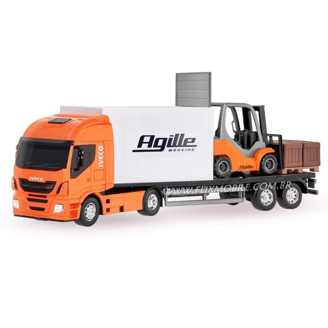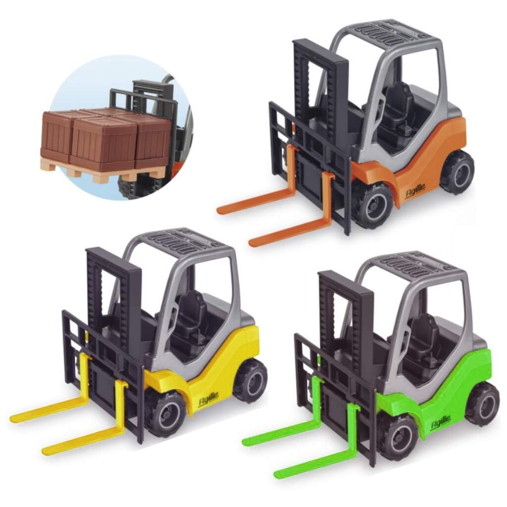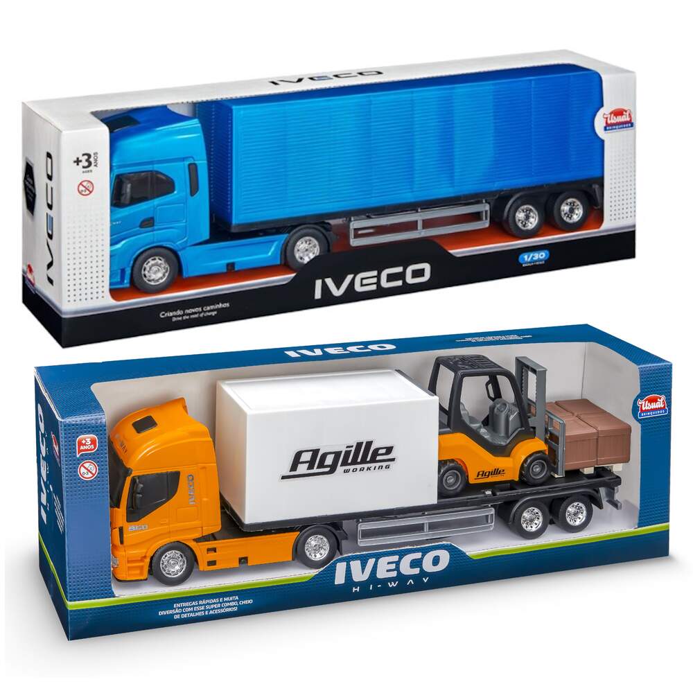 Kit de Carrinhos 2 Caminhões de Carga Baú e 1 Empilhadeira Kit de Carrinhos 2 Caminhões de Carga Baú e 1 Empilhadeira 0 avaliações | Dê a sua avaliação! Referência: 339e484 Modelo/Marca: Iveco Hi-Way com Empilhadeira e Carreta Baú de Brinquedo/Usual Brinquedos R$ 159,93 ou 3x de R$ 55,77 sem juros ou em até 12x de R$ 17,03 no cartão Comprar Indicar este produto Deixar um comentário Boleto Bancário Parcelas 1x de R$ 167,32sem juros 2x de R$ 83,66sem juros 3x de R$ 55,77sem juros 4x de R$ 46,58 5x de R$ 38,25 6x de R$ 31,88 7x de R$ 27,90 8x de R$ 24,41 9x de R$ 22,25 10x de R$ 20,19 11x de R$ 18,35 12x de R$ 17,03 Brinquedo Caminhão Carreta Baú Iveco Hi-Way e Caminhão Plataforma com Empilhadeira e AcessóriosEntregas rápidas e muita diversão com esse super combo, cheio de detalhes e acessórios. Construído com ótimo material e pneus emborrachados da empilhadeira, as crianças vão amar esse brinquedo. Brincadeira para as crianças e para os adultos, idêntico aos caminhões prancha que vemos nas estradas. E empilhadeira é um brinquedo que pode brincar separado, ela desprende da carreta e vira um brinquedo á parte, assim como o Pallet de acoplado. Já a Carreta prancha conta com um Bau que abre e vira um porta cargas ou objetos, é muito realismo e diversão com este brinquedo que traz a Iveco para a magia das brincadeiras. Especificações:Fabricante: Usual BrinquedosReferência: 484 e 339Modelo: Iveco Hi-Way Baú e Prancha com empilhadeira e PalletComposição: Polipropileno (PP), pneus emborrachadosDimensões: Medidas nas fotosIndicado para crianças maiores de 3 anosEnviado em Cores Sortidas Conteúdo do pacote:1x Caminhão Baú1x Caminhão Prancha1x Empilhadeira1x Caixa de Paletes
