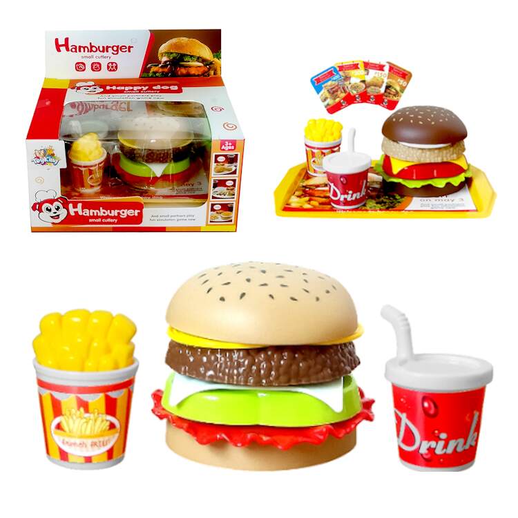 Kit Lanche Fast Food de Brinquedo Combo com Hambúrguer, Batata Frita e Refrigerante