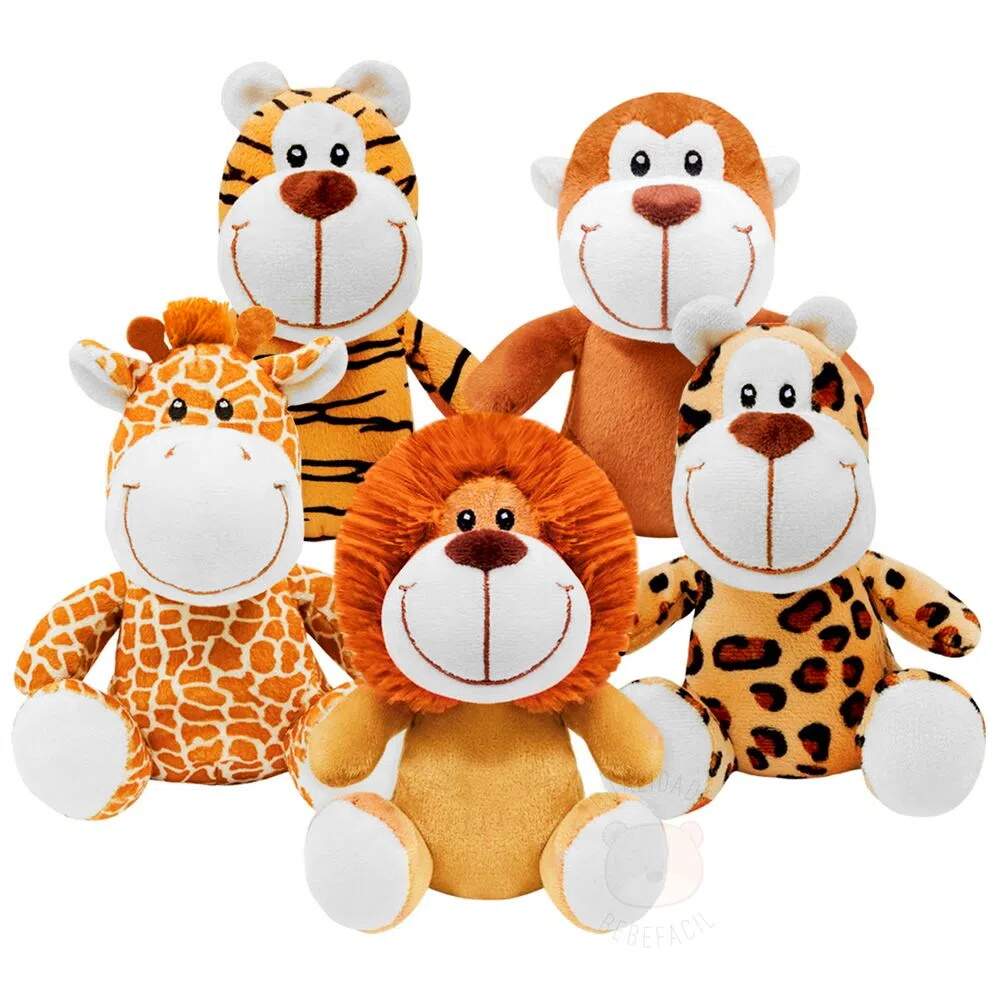 Kit Turminha Safari com 5 Pelúcias Onça Tigre Leão Girafa Macaco Buba Kit Turminha Safari com 5 Pelúcias Onça Tigre Leão Girafa Macaco Buba 0 avaliações | Dê a sua avaliação! Referência: 6479KIT5 Modelo/Marca: Turminha Safari Coleção com 5 Pelúcias/BUBA R$ 198,60 ou 3x de R$ 69,26 sem juros ou em até 12x de R$ 21,14 no cartão Desconto progressivo Quantidade Valor 1 até 2 unidades R$ 198,60 / un. 3 até 10 unidades R$ 191,60 / un. Comprar Indicar este produto Deixar um comentário Boleto Bancário Parcelas 1x de R$ 207,78sem juros 2x de R$ 103,89sem juros 3x de R$ 69,26sem juros 4x de R$ 57,84 5x de R$ 47,50 6x de R$ 39,59 7x de R$ 34,65 8x de R$ 30,32 9x de R$ 27,63 10x de R$ 25,07 11x de R$ 22,79 12x de R$ 21,14 Coleção Turminha Safari de 5 Pelúcias da Buba para BebêsDivertidos e encantadores! Leão, Girafa, Macaco, Onça e Tigrinho, esses companheiros de aventura superfofos vão dar asas à imaginação dos pequenos. Feitos em pelúcia macia de brincar, abraçar e ainda deixa o quarto do bebê todo charmoso. Características:Marca: BubaModelo: Turminha SafariReferência: 6479Tamanho (cada unidade): 16 cm de Altura x 15 de LarguraComposição: 100% PoliésterIdade Mínima: Á partir de 3 mesesCertificado INMETRO: Registro 008046/2021Itens Inclusos:1x Leão1x Girafa1x Macaco1x Onça1x Tigre